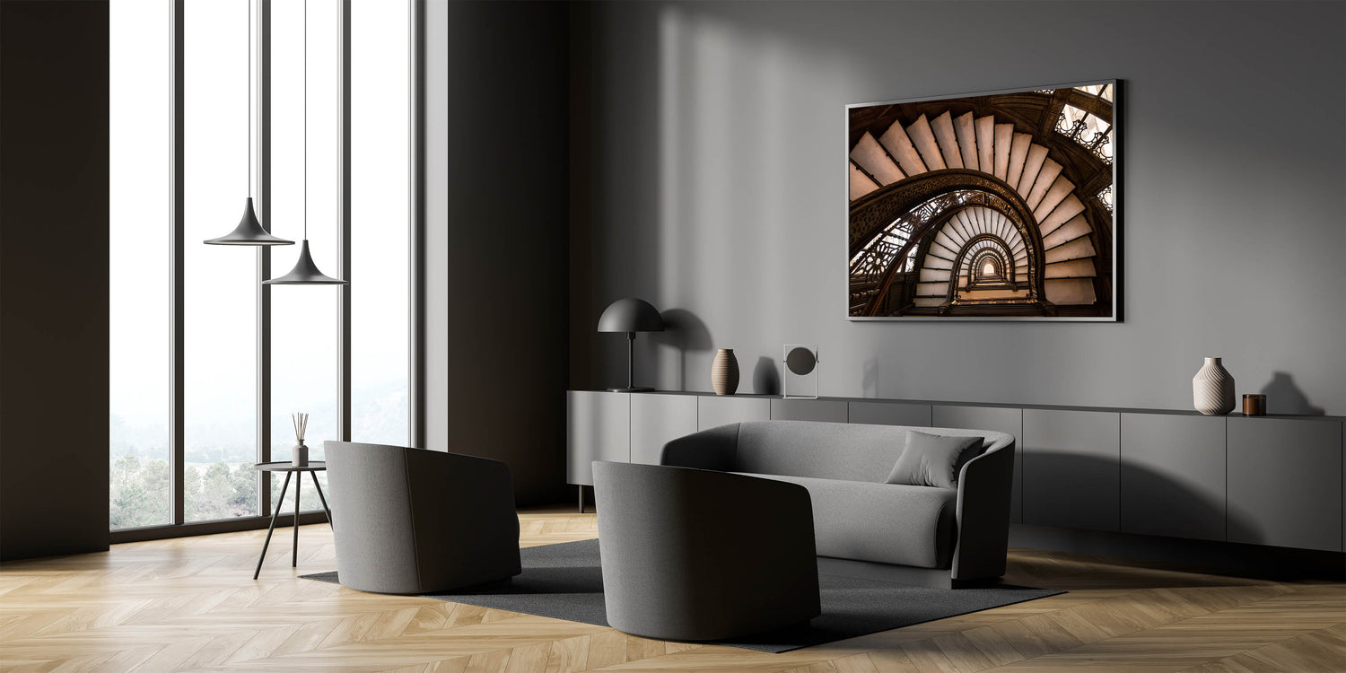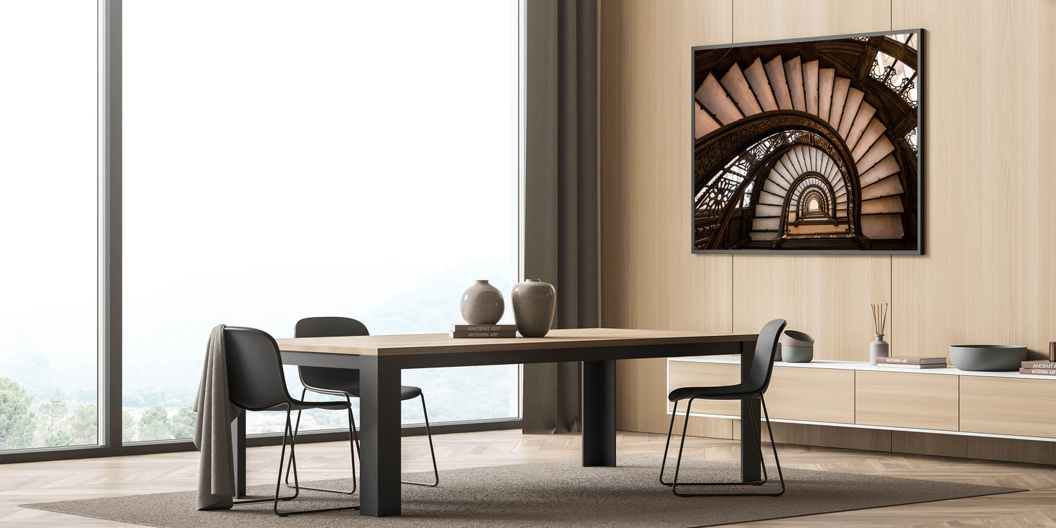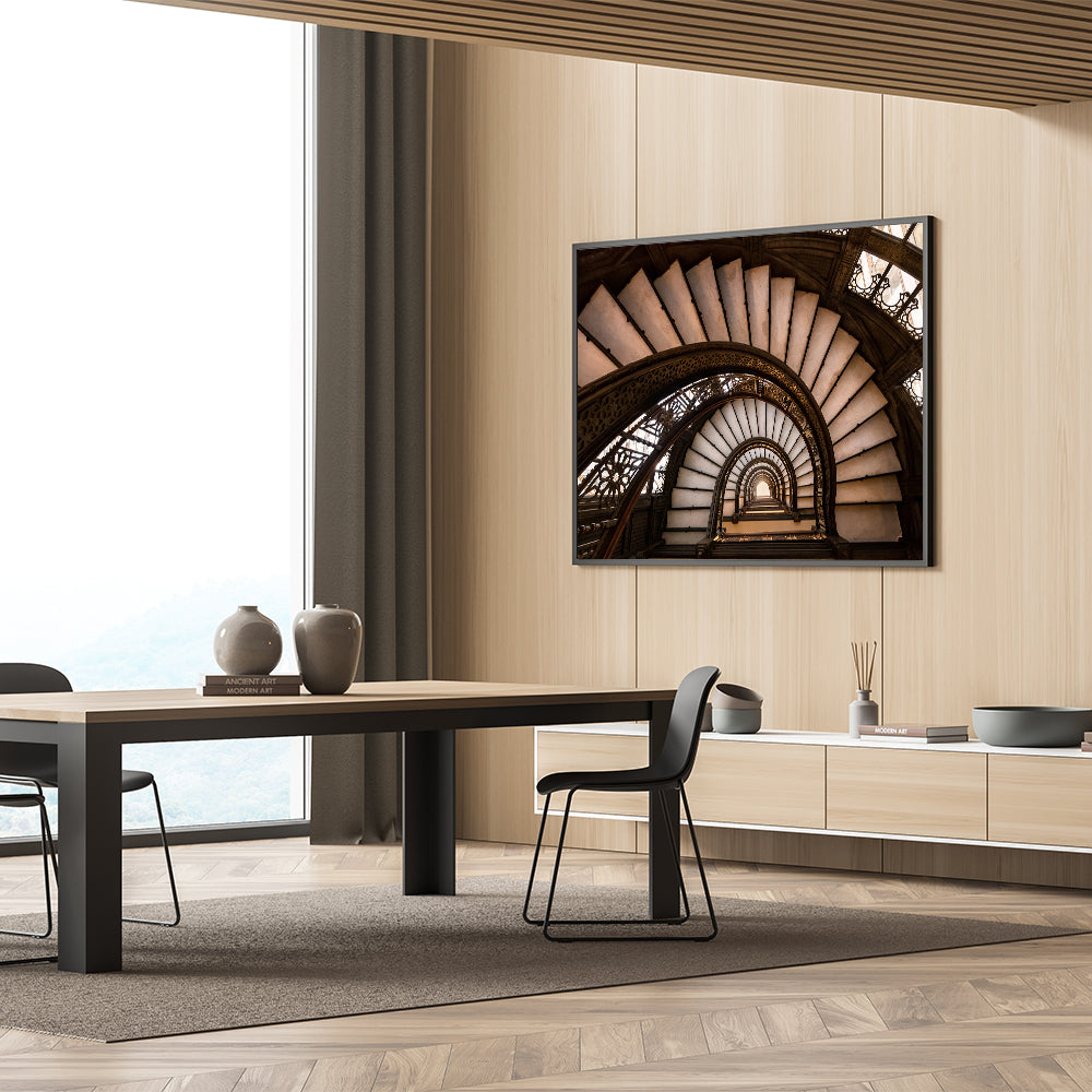 This staircase wall art is not only a statement piece but also a reflection of elegance and sophistication. Perfect for those who appreciate architectural beauty and want to add a touch of class to their living space. Whether you prefer a sleek acrylic finish or a traditional framed print, this artwork will enhance any room.