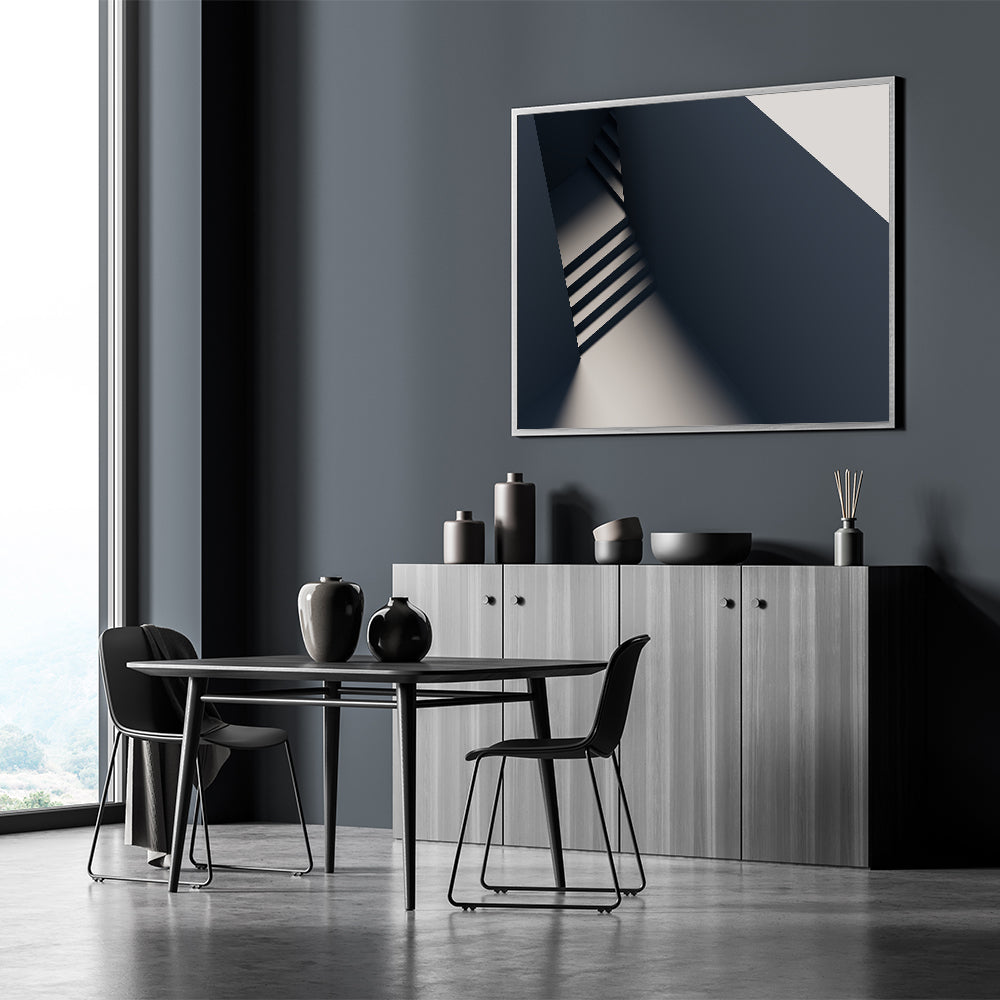 Add a touch of architectural elegance to your walls with this sophisticated staircase art piece. Perfect for those who appreciate clean, modern designs, this artwork will transform any room into a stylish haven.