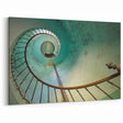Bring a touch of vintage charm to your home or office with this captivating rustic spiral staircase wall art. This unique photograph captures the weathered beauty of a spiral staircase, where time has left its mark in the form of patina and chipped paint. The muted teal tones and the rustic appeal of the architecture make this piece perfect for those who appreciate art with character and history. It adds a distinctive touch to any interior, blending modern style with historical charm.