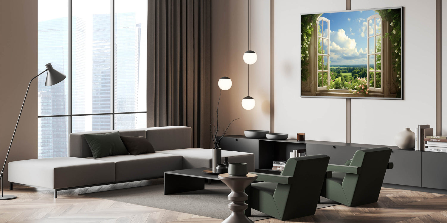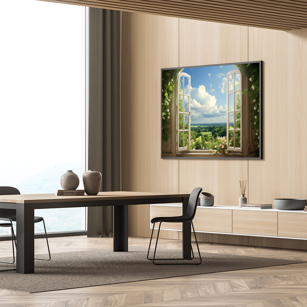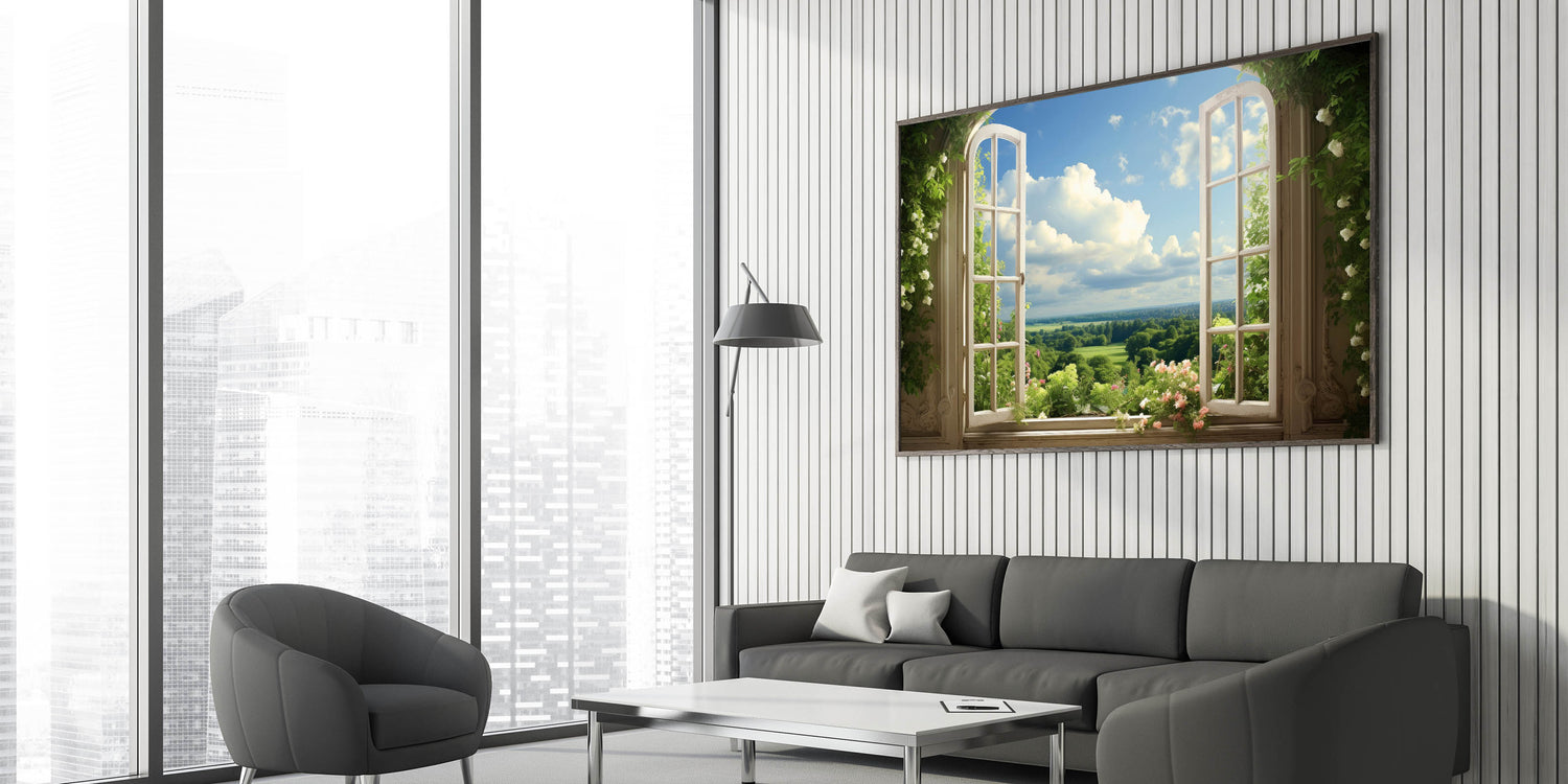 This window canvas art is perfect for those who love the calm and beauty of the outdoors. Whether you’re decorating a living room, bedroom, or office, this unique urban window decor piece will infuse your space with peace and natural beauty. Embrace the serenity of nature with this elegant and timeless window artwork.