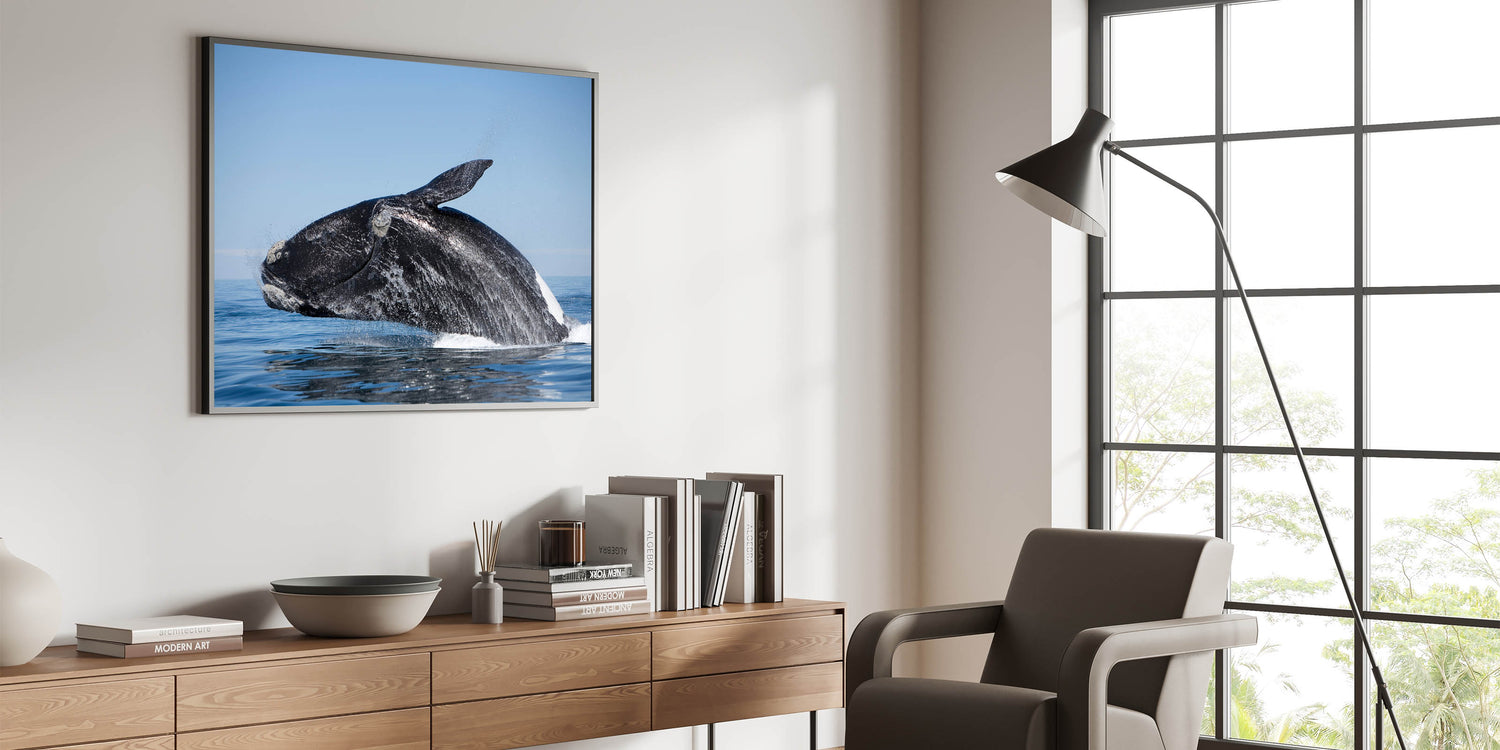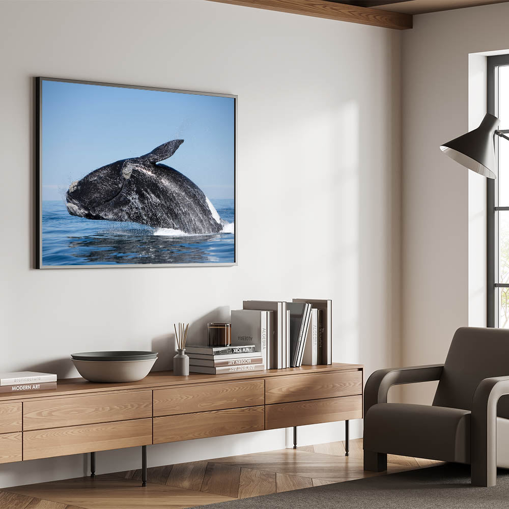Experience the thrill of nature with our "Argentine Nature Photography" series, featuring a magnificent whale breaching off the coast of Argentina. This dynamic image captures the power and grace of the ocean's giants, making it a captivating addition to any wildlife enthusiast's collection.