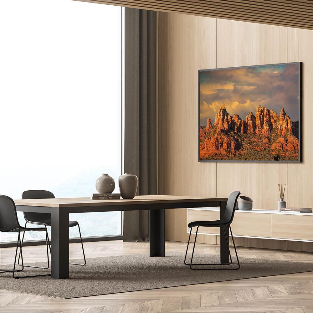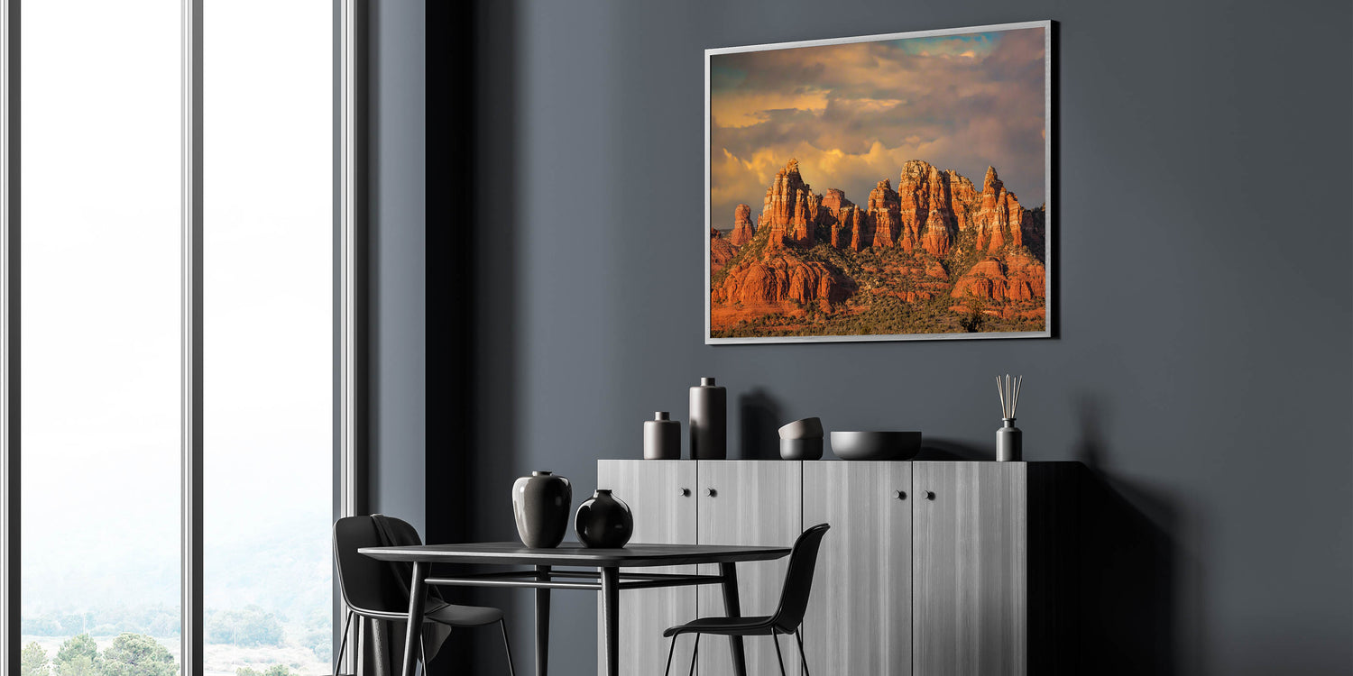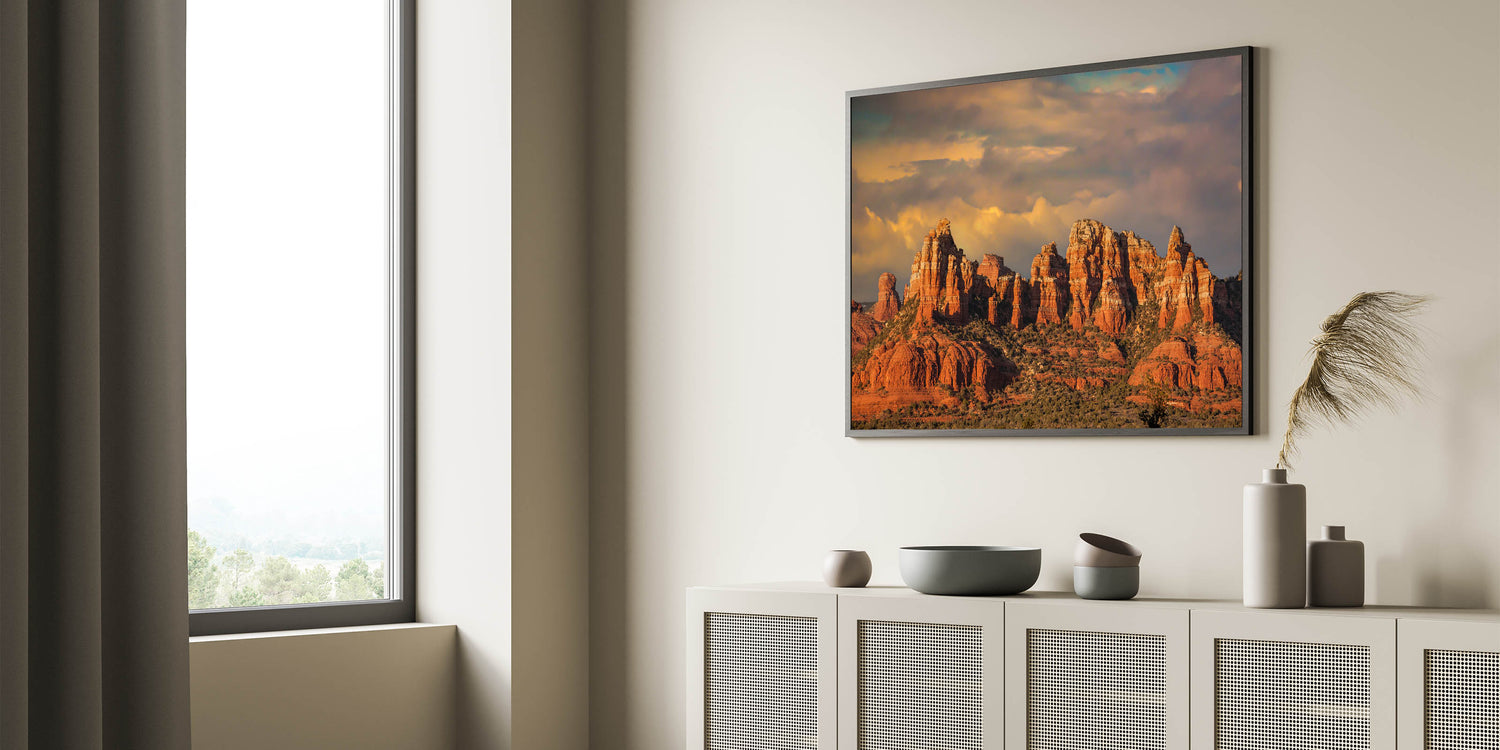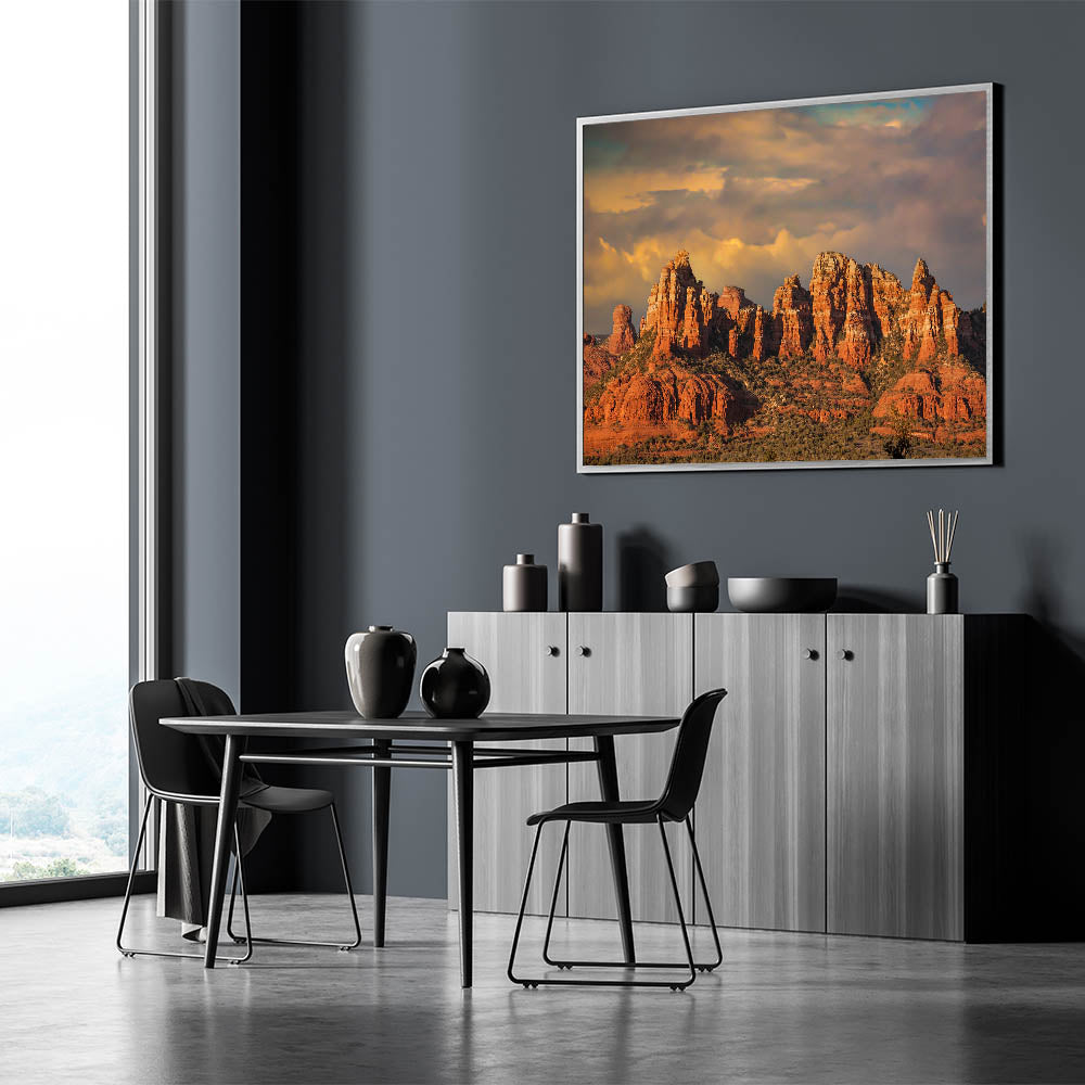 Whether you’re decorating your home or office, this captivating view of Sedona’s red rock formations is perfect for anyone looking to showcase the rugged beauty of Arizona’s desert landscapes.