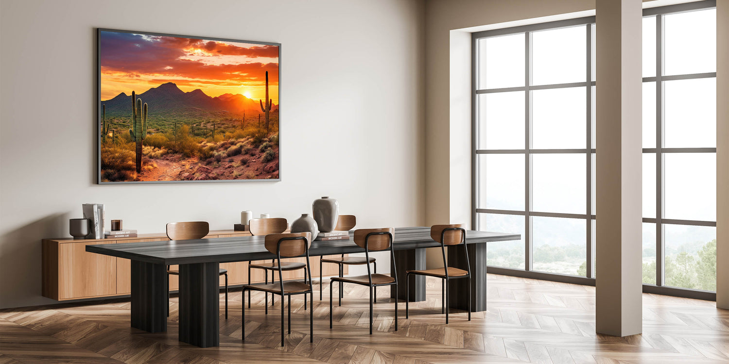 - Vivid depiction of stunning desert sunsets with rich, bold colors that enhance any interior.