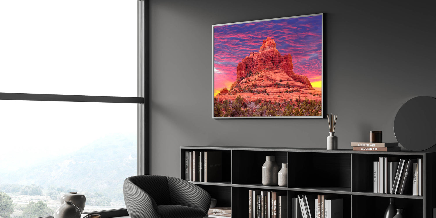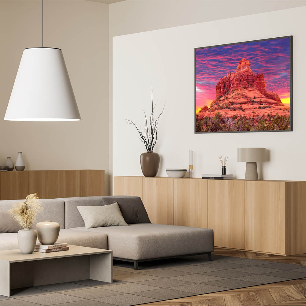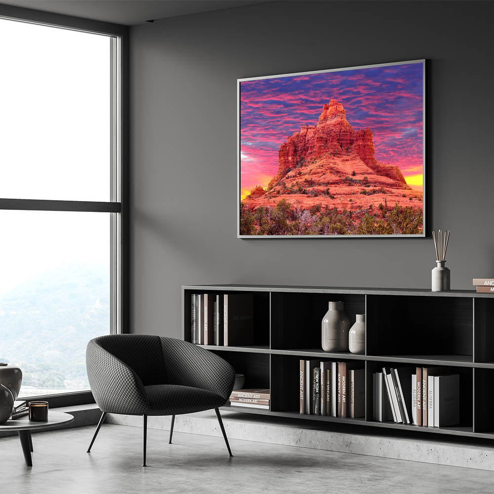 Perfect for any home or office, this piece showcases the majestic red rocks of Sedona and the stunning colors of the Arizona desert sunset. Add a touch of natural beauty to your space with this high-quality Sedona wall art.