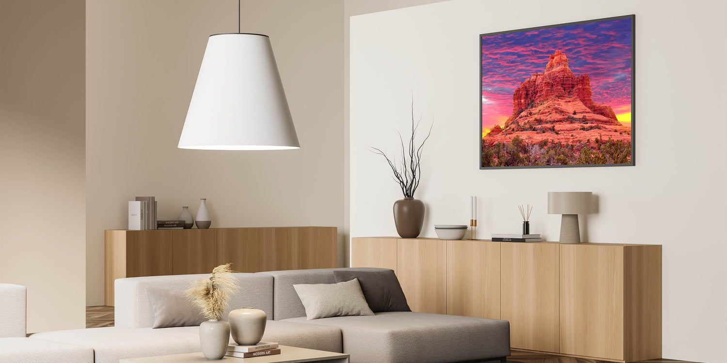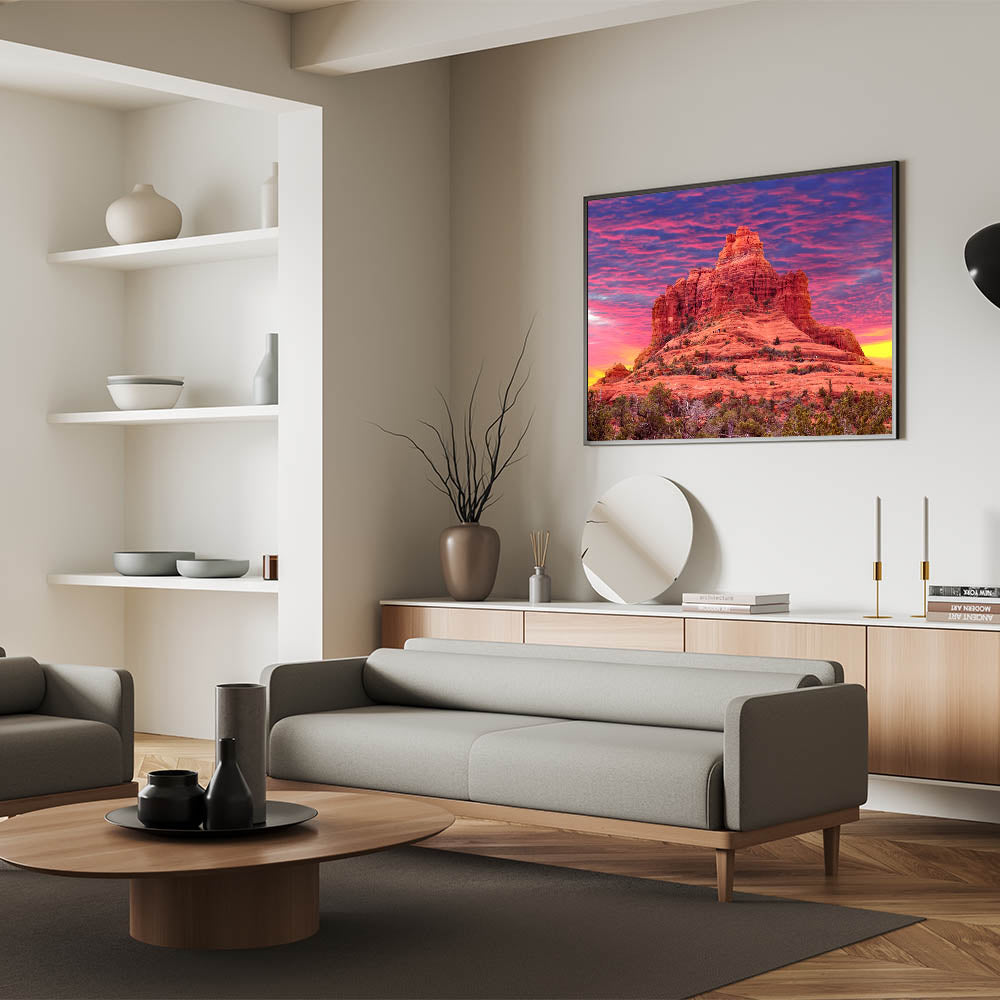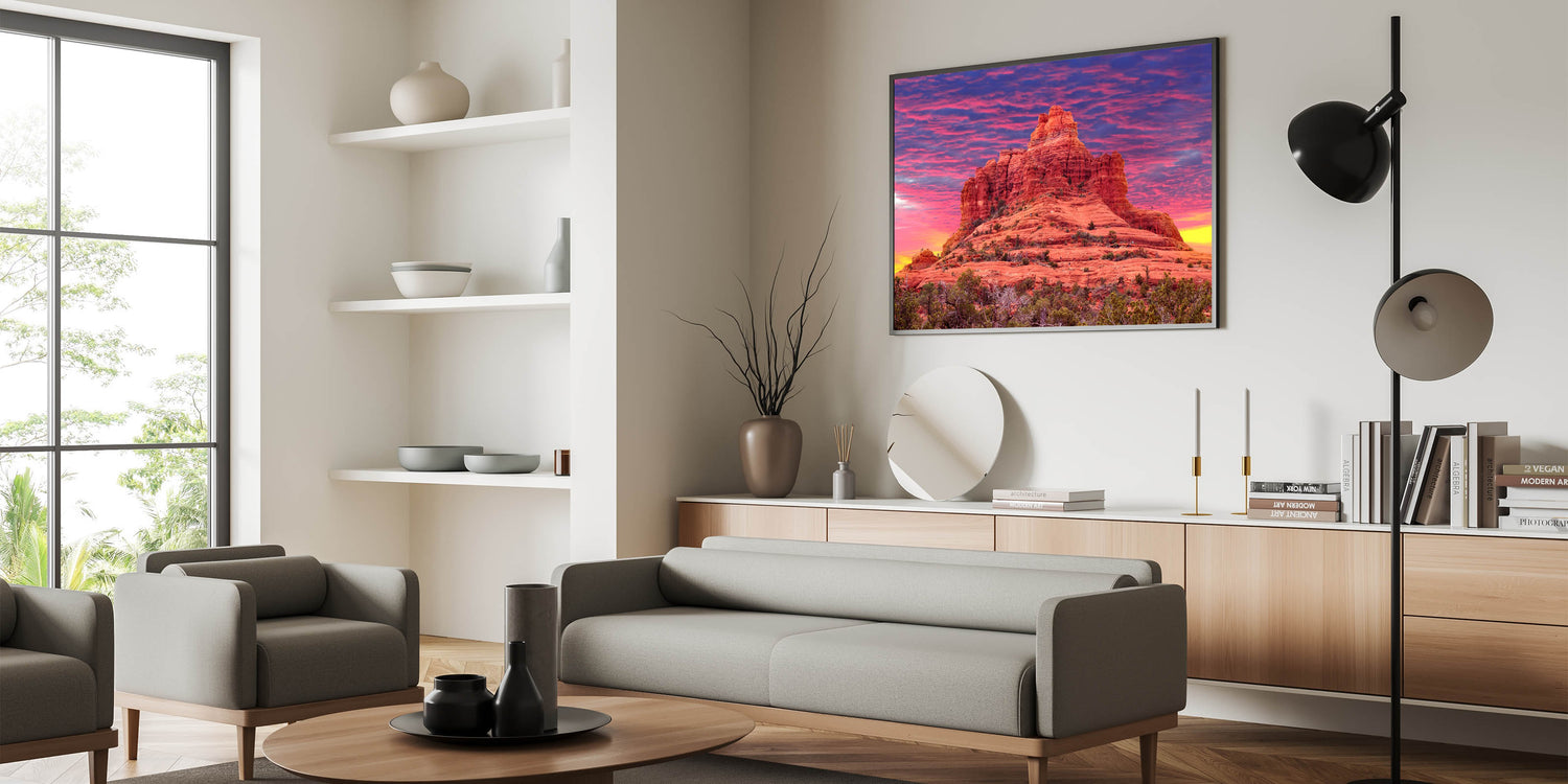 Perfect for any home or office, this piece showcases the majestic red rocks of Sedona and the stunning colors of the Arizona desert sunset. Add a touch of natural beauty to your space with this high-quality Sedona wall art.