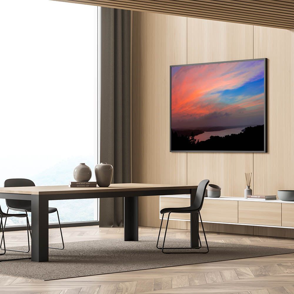 Whether you're looking to add a splash of color to your living room, office, or bedroom, this vibrant sunset print will bring warmth and tranquility into your space. Celebrate Arkansas’s scenic beauty with this stunning piece of nature photography.