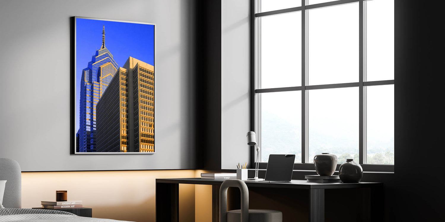 Elevate your decor with this beautiful Philadelphia skyline print. Whether displayed as a framed print or on stretched canvas, this piece brings the dynamic energy of the city into your space. Choose from multiple sizes and formats to fit your style perfectly.
