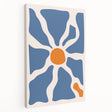 Infuse your space with modern, boho chic style with this abstract wall art, featuring bold blue and orange organic shapes. The central burst of vibrant orange against the calming blue background creates a striking and dynamic visual contrast, perfect for eclectic and contemporary interiors. This bohemian canvas print is ideal for adding an artistic and playful touch to any room.
