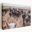Experience the heart of ranch life with this captivating cattle herd farmhouse wall art. Featuring a moving herd of cattle across an open field, this artwork brings the essence of the countryside into your home. The natural tones and expansive landscape make this piece perfect for adding a sense of rustic charm and authenticity to any farmhouse or country-style interior.