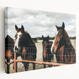 Capture the essence of rustic charm with this stunning farmhouse wall art featuring a serene scene of horses standing by a fence. Perfect for those who love the countryside, this piece brings the beauty of nature and the peaceful ambiance of country living into your home. The muted tones of the landscape and the rich brown shades of the horses add warmth and a vintage farmhouse aesthetic to any room.