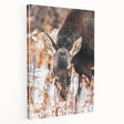 Forest Forager" captures a close-up encounter with a moose grazing in the wild, offering a window into the quiet life of forest denizens. This rustic wall art piece beautifully conveys the textures and tones of the wilderness, making it a striking addition to any nature-inspired decor.