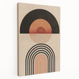 Add a touch of bold, geometric flair to your home with this striking Bohemian wall art. Featuring a balanced blend of circular and arched shapes in warm earthy tones, this eclectic boho decor canvas is perfect for adding a unique and artistic bohemian style to your living space. The symmetrical design and warm color palette make this piece a modern and chic addition to any room, effortlessly blending with both contemporary and boho-inspired interiors.
