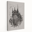 Experience the grandeur of medieval architecture with this Gothic-inspired sketch of a cathedral. This detailed artwork captures the intricate designs and towering spires typical of Gothic architecture, making it a stunning addition to any decor that appreciates historical and architectural beauty. The piece’s fine detailing and stark contrast offer a compelling visual experience that draws viewers into a bygone era.