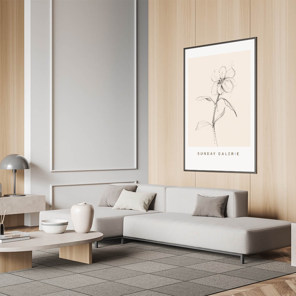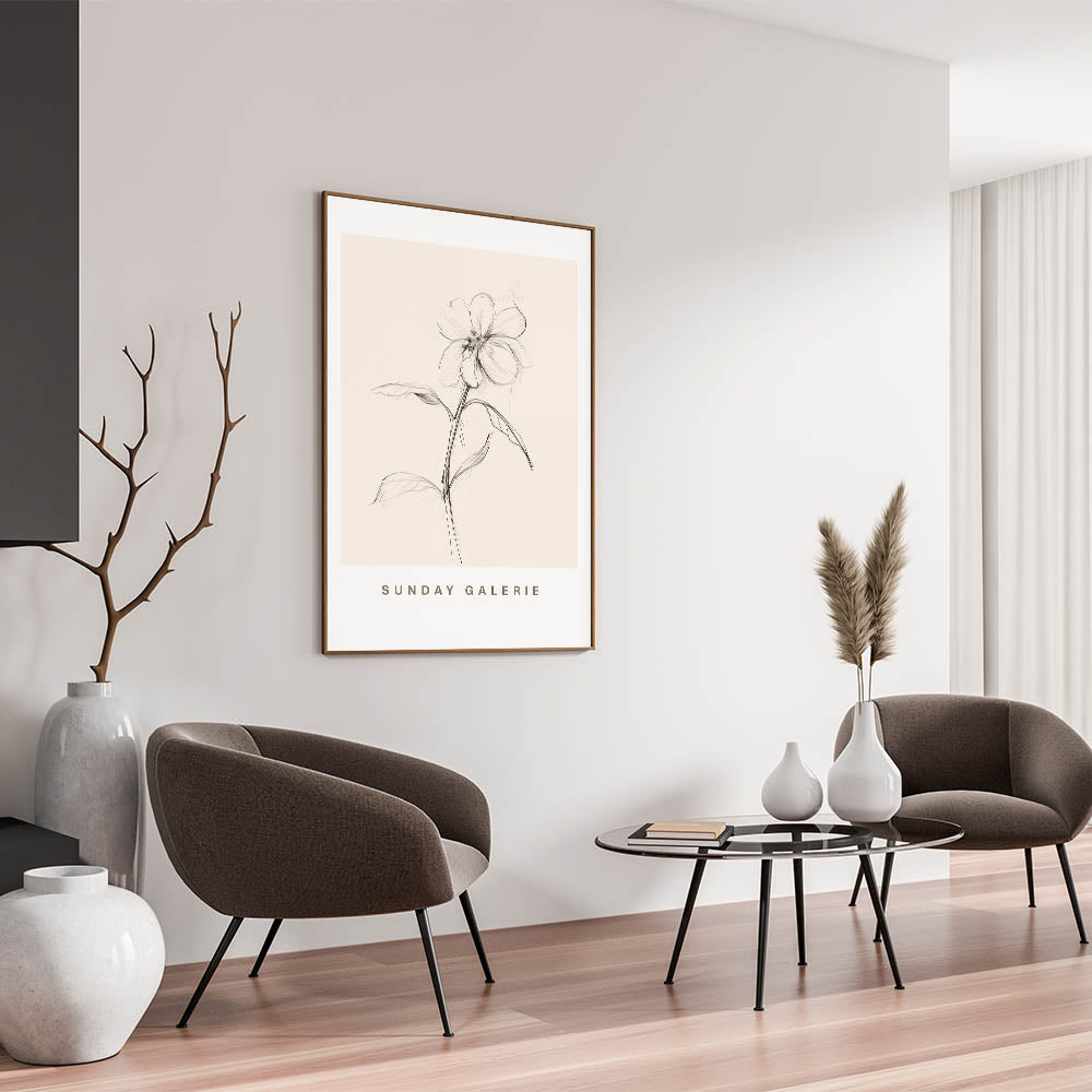 Introduce an air of elegance and simplicity to your living space with this stunning minimalist abstract art piece, featuring a delicate single flower sketch on a soft beige canvas. Perfect for modern and contemporary interiors, this artwork brings a touch of nature's beauty in a refined and understated manner.