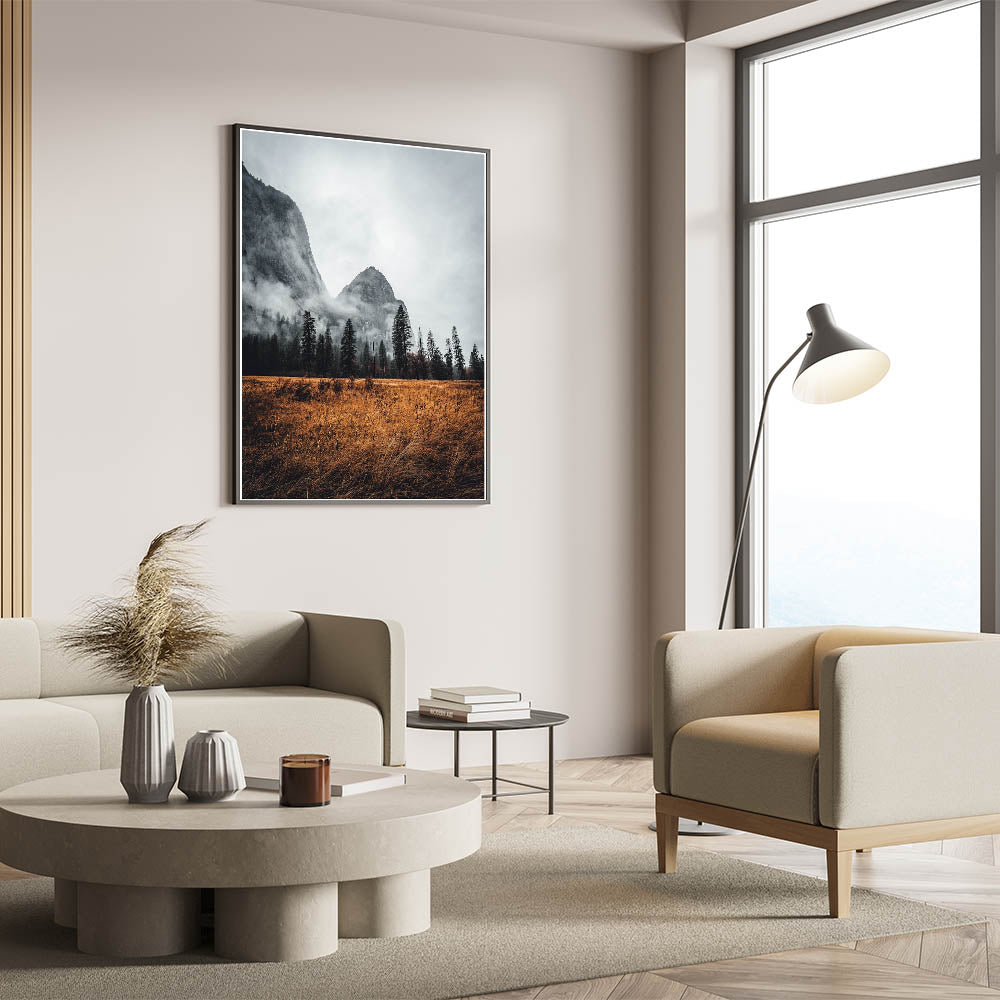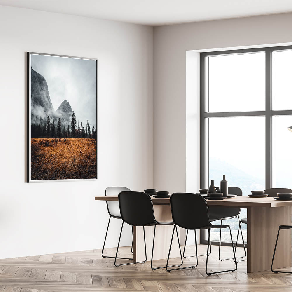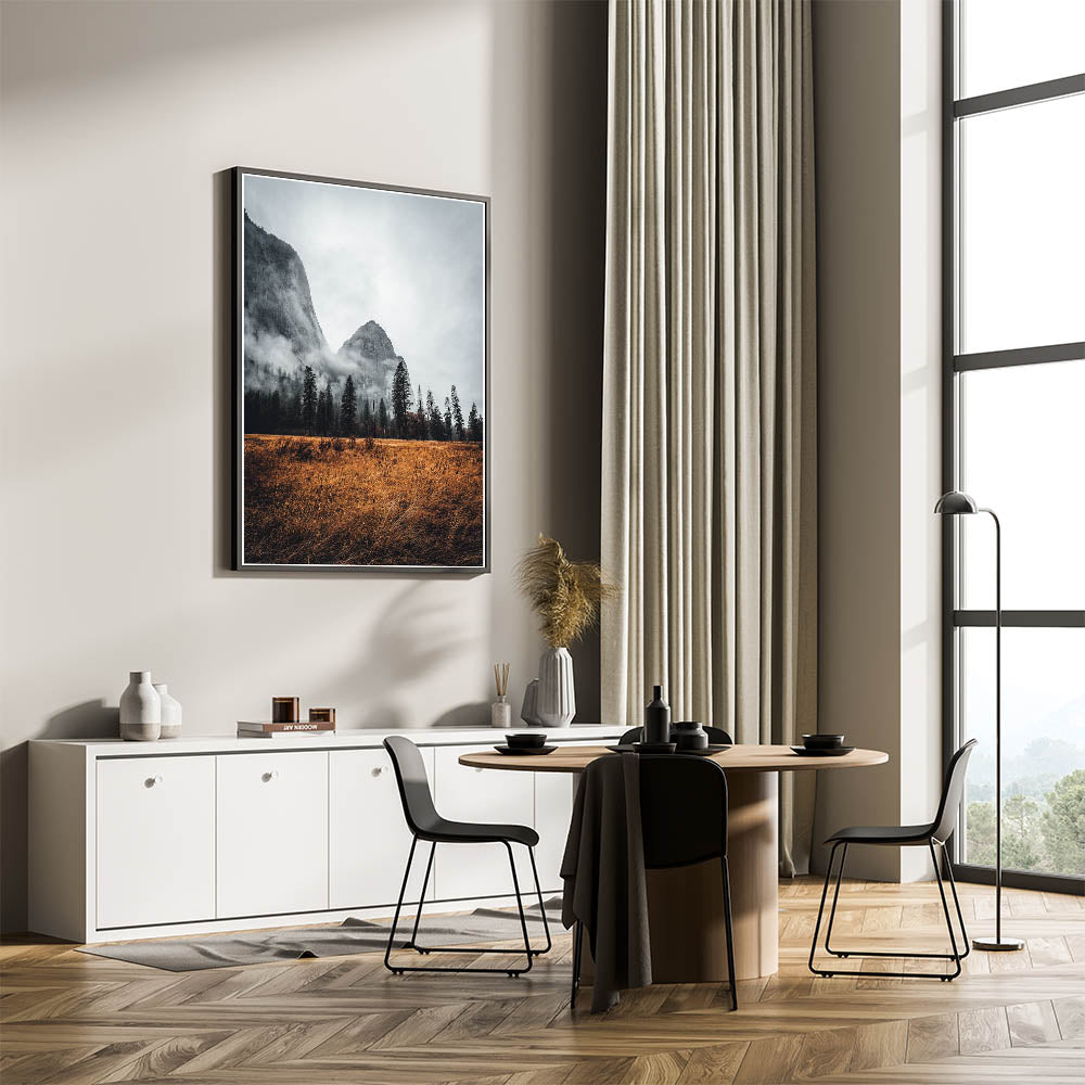 • Striking Imagery: Detailed print captures the haunting beauty of a misty mountain.