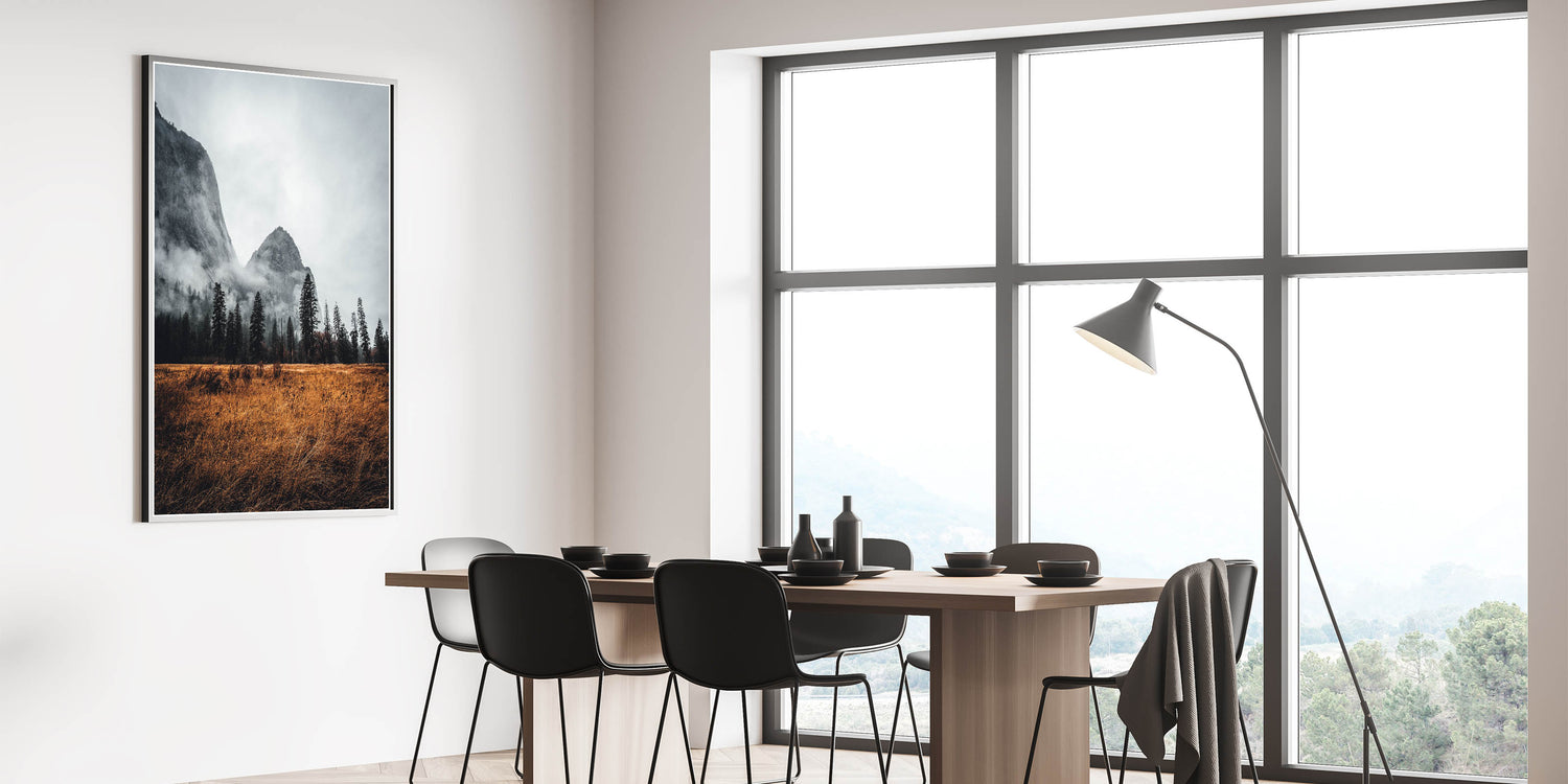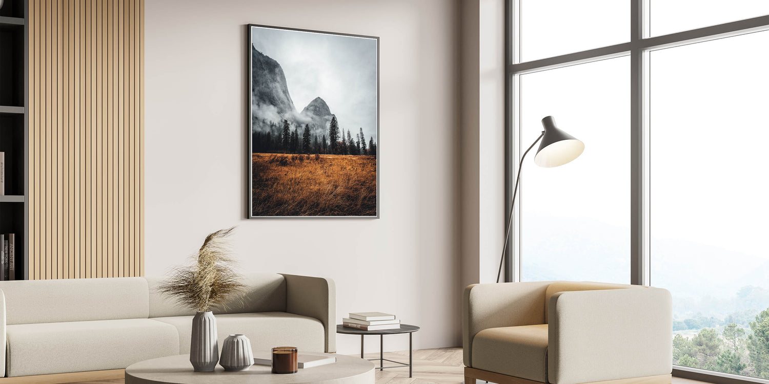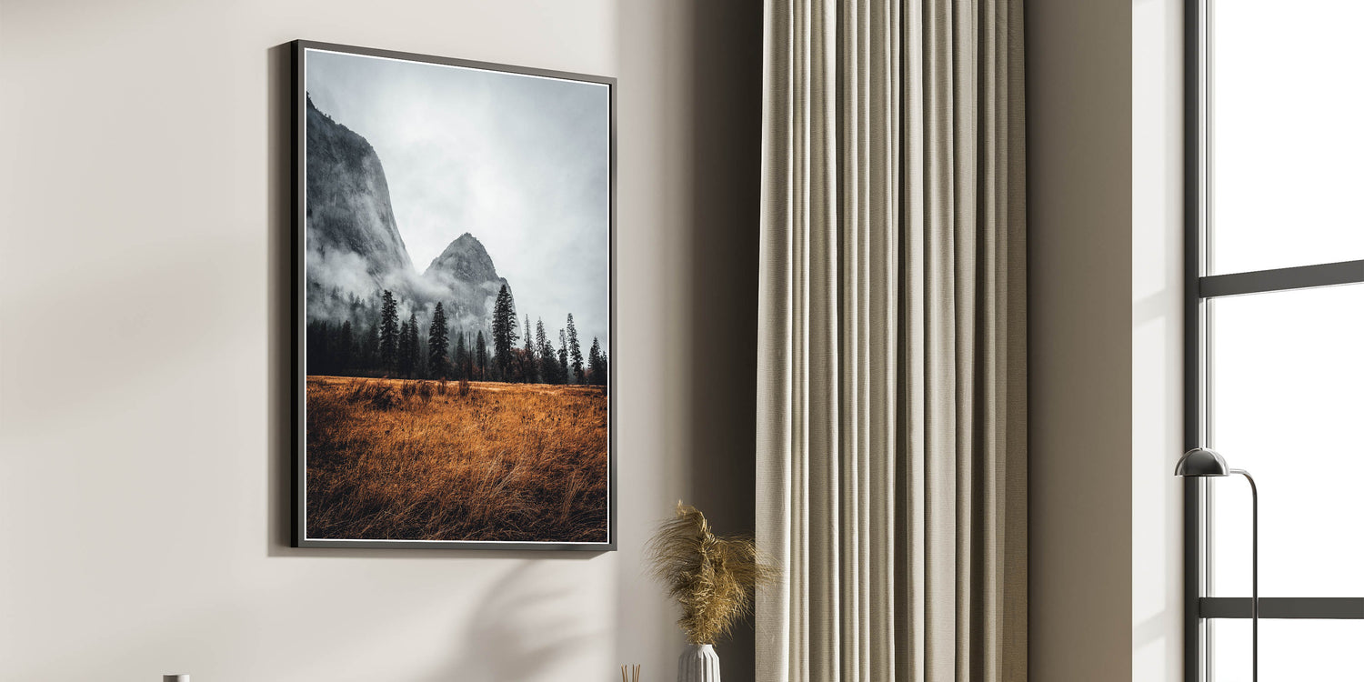 • Striking Imagery: Detailed print captures the haunting beauty of a misty mountain.