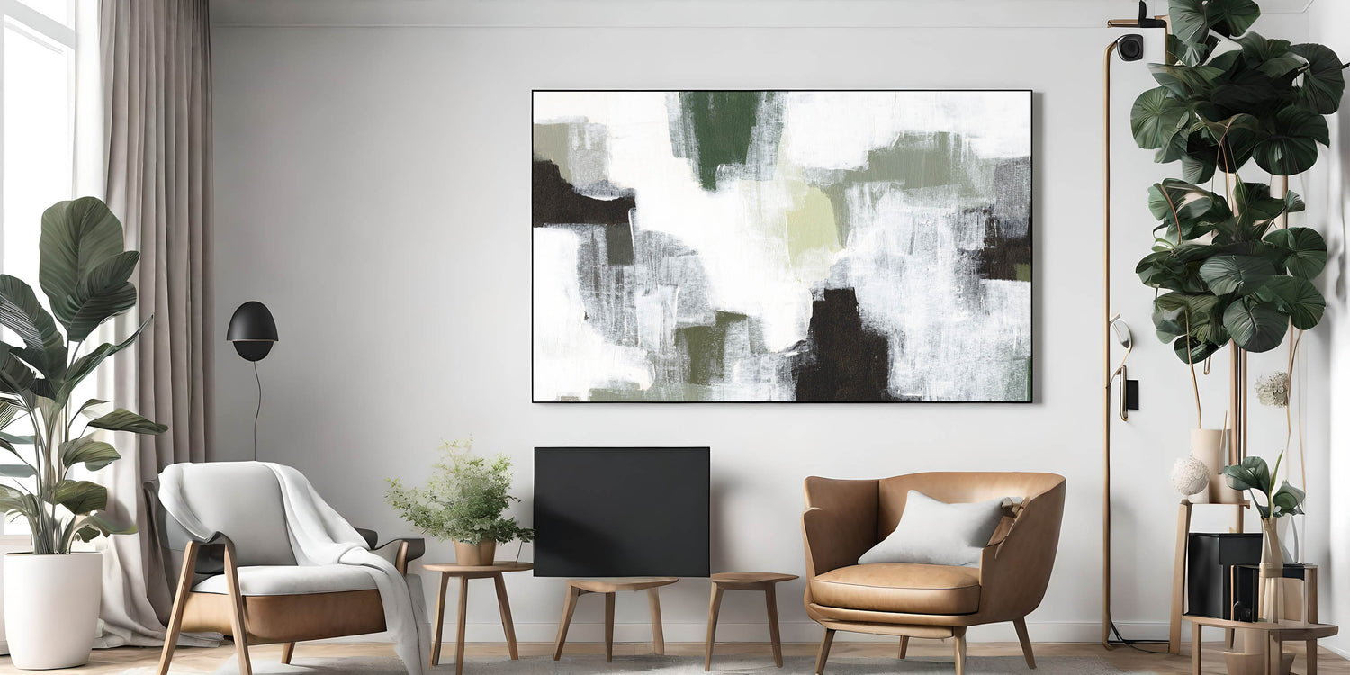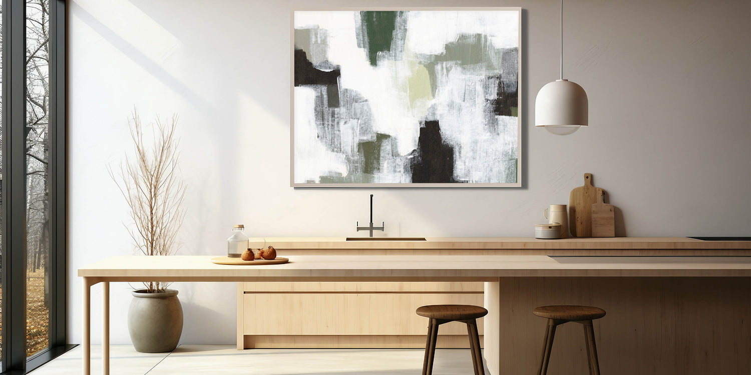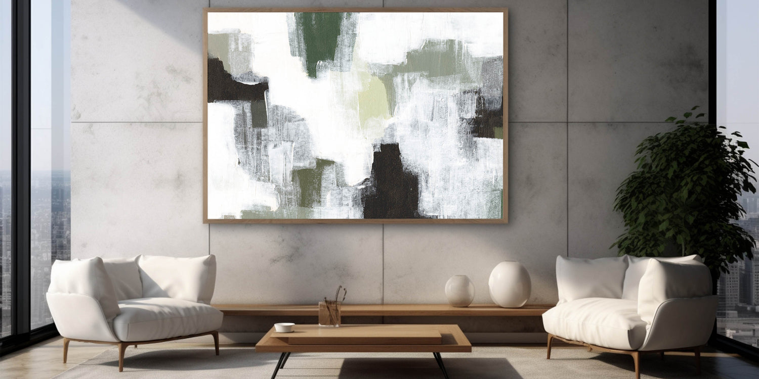 Elevate your interior decor with this elegant piece of modern minimalist art, showcasing a refined blend of green, gray, and white tones. The abstract geometric patterns create a captivating visual texture, offering a sophisticated yet understated aesthetic that fits seamlessly into any contemporary space. This artwork is perfect for those who appreciate the subtle beauty of minimalist design combined with a touch of natural elegance.