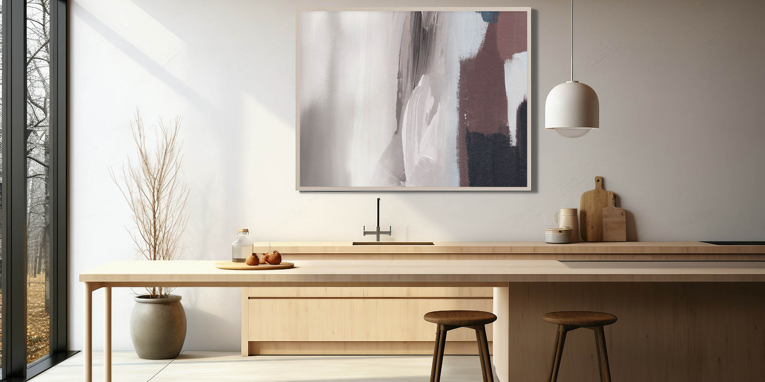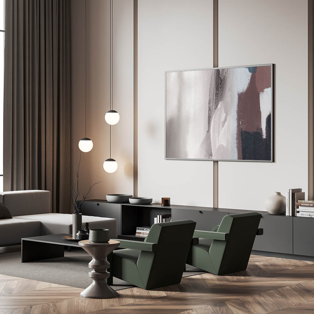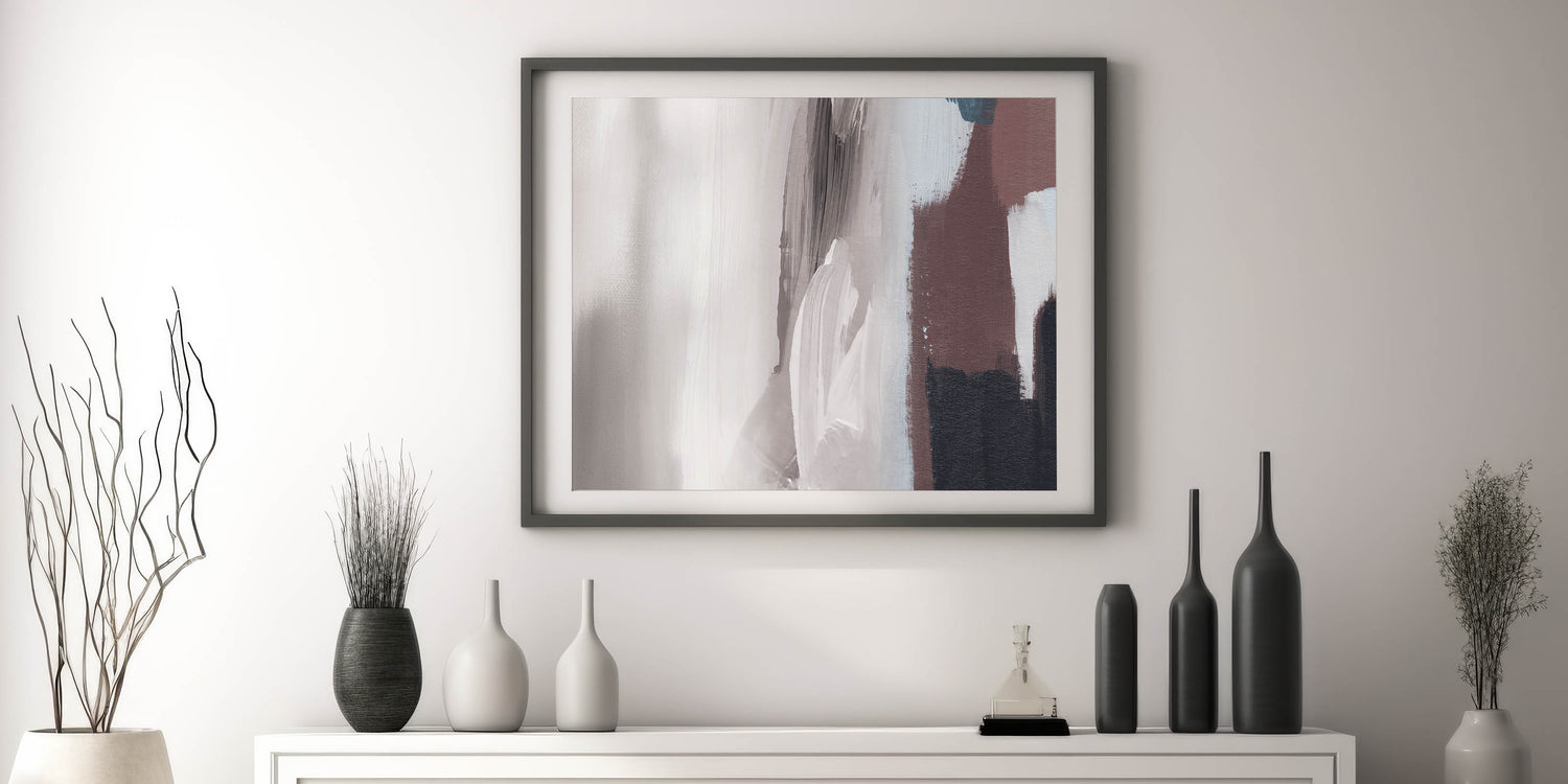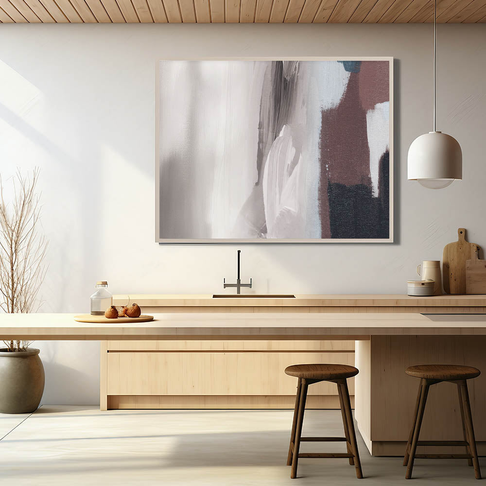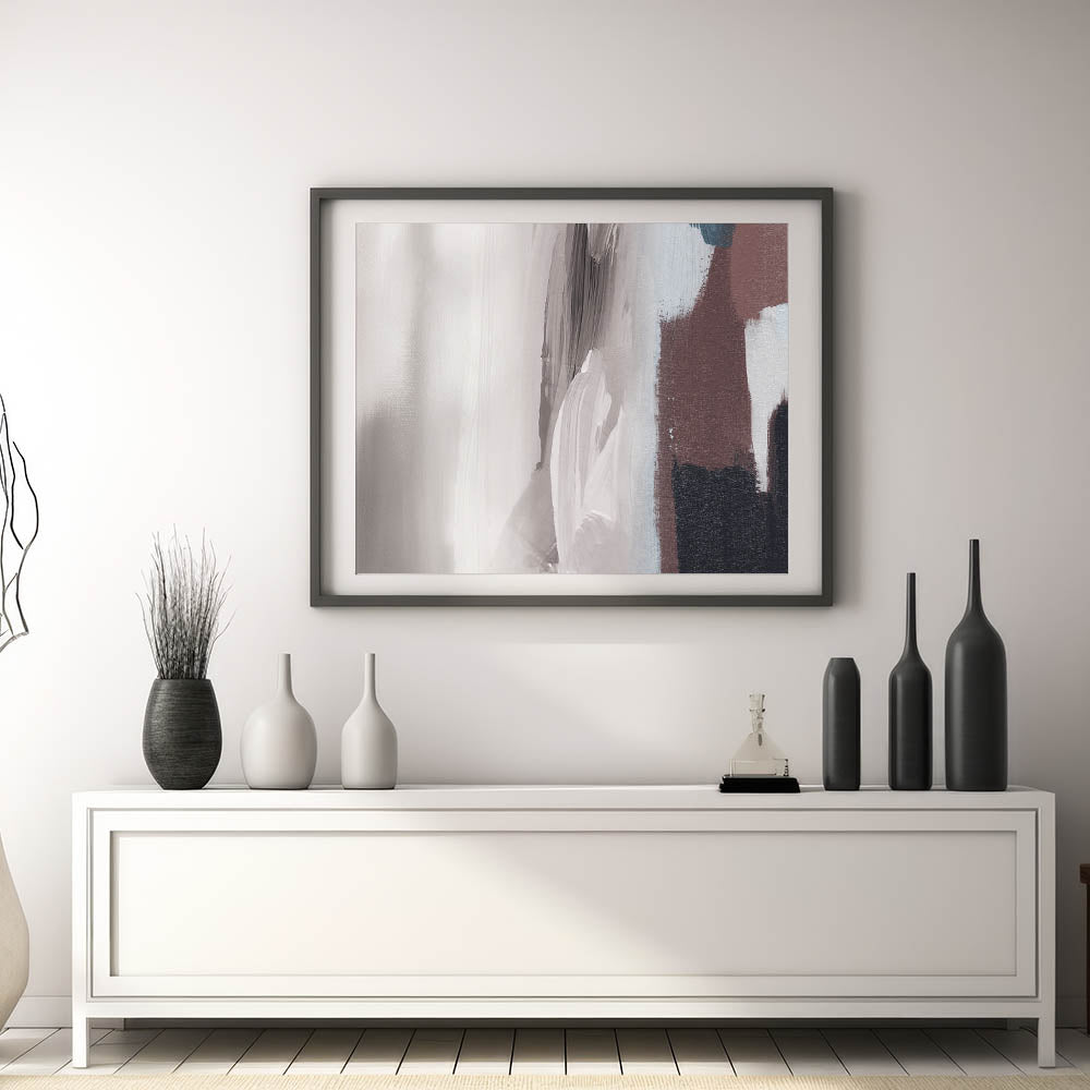 Introduce a touch of modern elegance to your space with this striking Modern Strokes and Lines Abstract Art. This piece showcases a harmonious blend of dynamic brush strokes and geometric lines, creating a visually captivating composition that complements any contemporary interior. The abstract design features a neutral palette with shades of gray, white, and brown, making it versatile enough to enhance various décor styles.