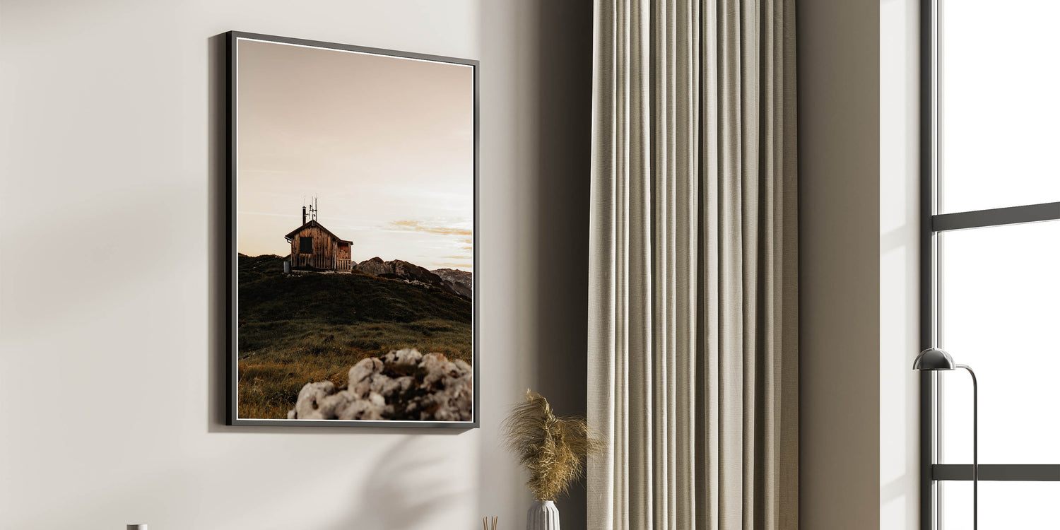 Capture the peaceful isolation of the wilderness with our "Mountain Cabin Serenity" wall art. This stunning artwork features a solitary wooden cabin perched atop a grassy hill, bathed in the soft, golden light of sunset. The rugged beauty of the distant mountains and the simplicity of the cabin create a sense of calm and reflection, perfect for anyone who cherishes the quiet solitude of nature.