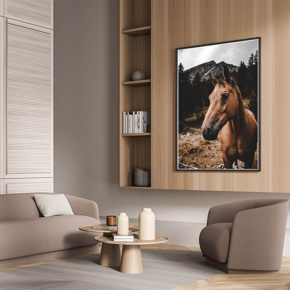- Vivid Detailing: The intricate details of the horse's features and the mountain scenery are expertly captured, offering depth and realism.
