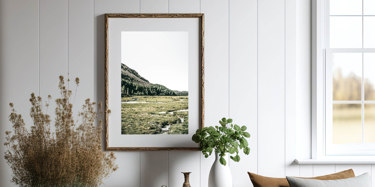 Mountain Valley Wall Art – Rustic Farmhouse Nature-Inspired Decor Print