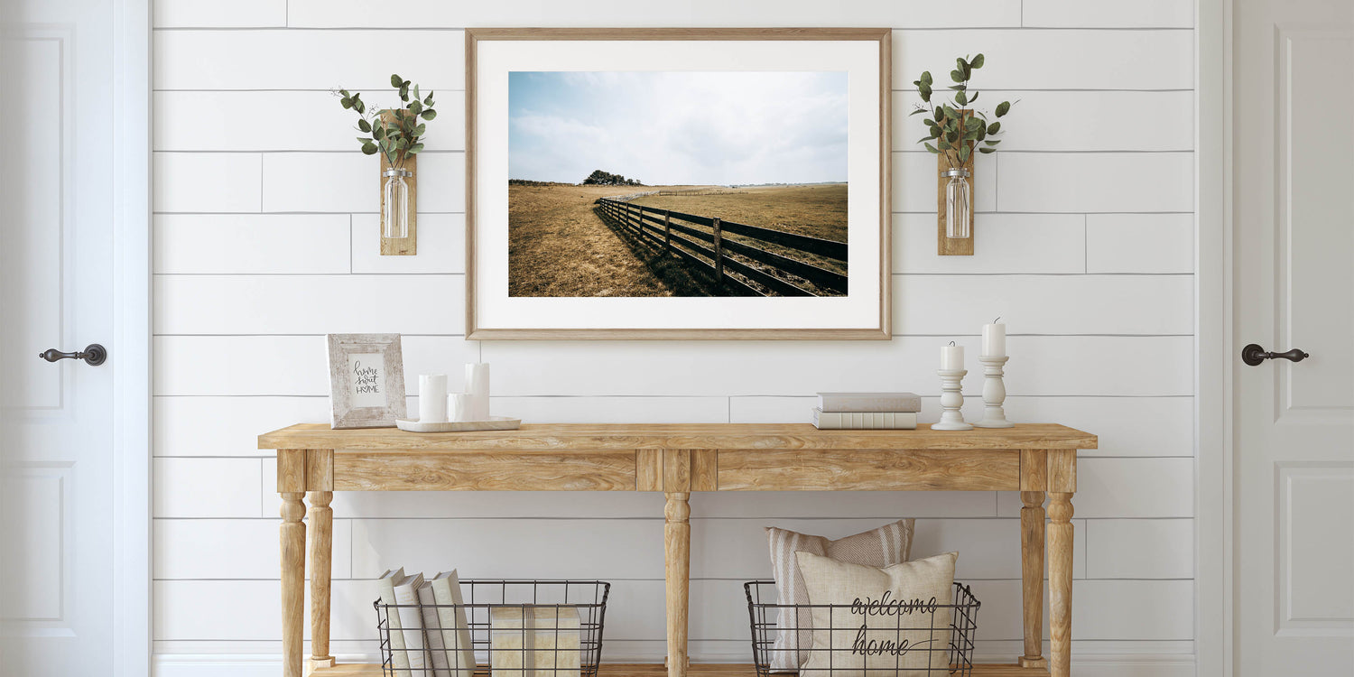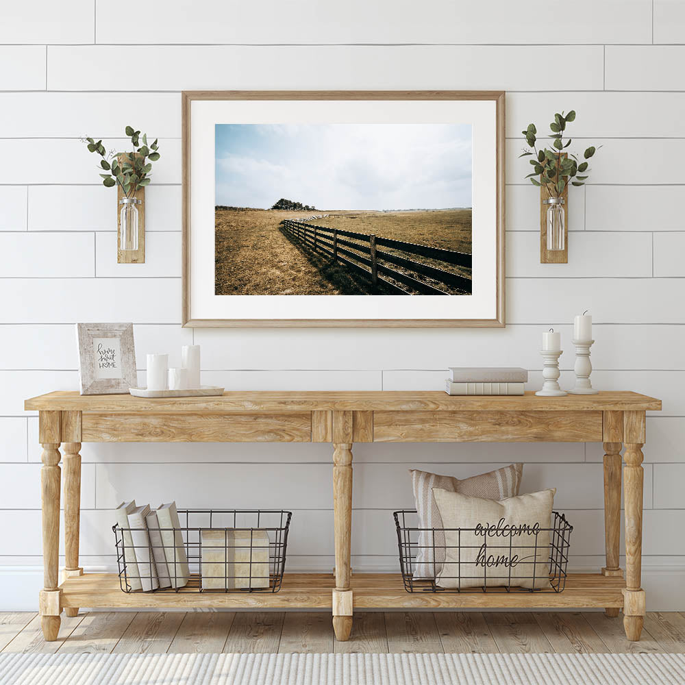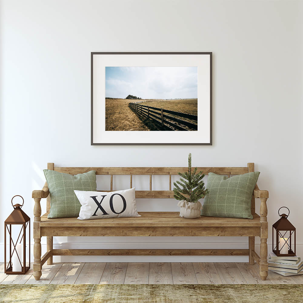 Open Field and Fence Farmhouse Wall Art – Rustic Country Style Print