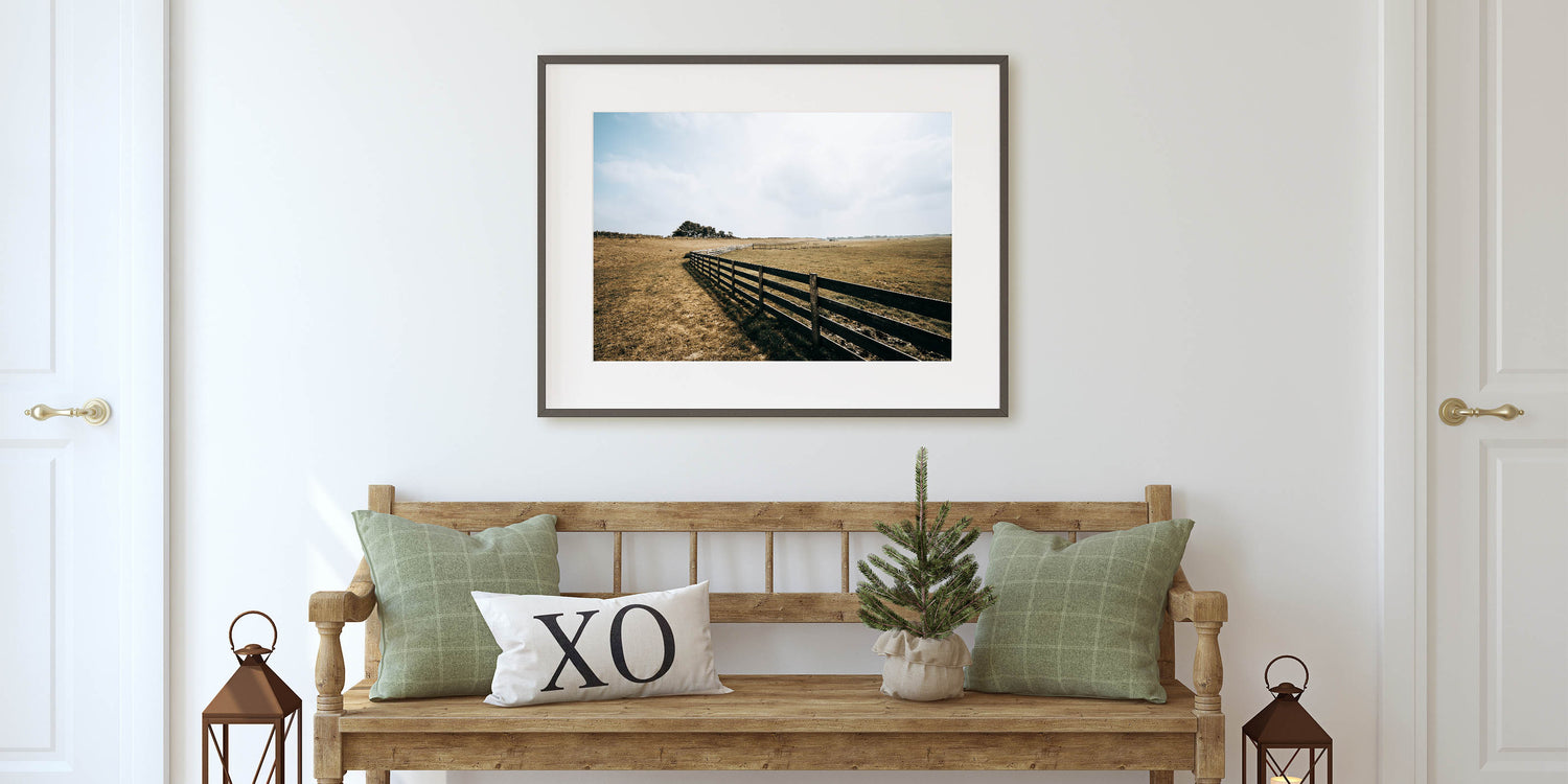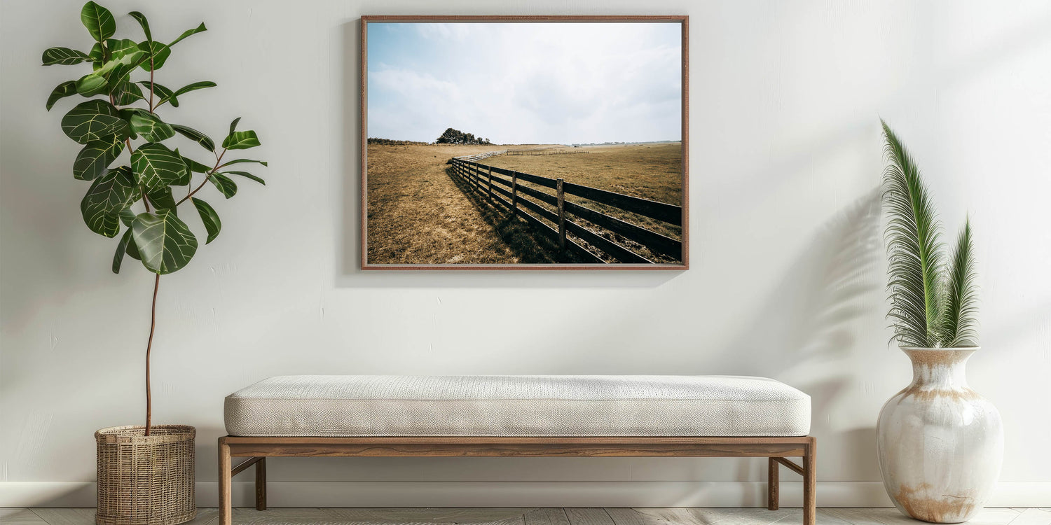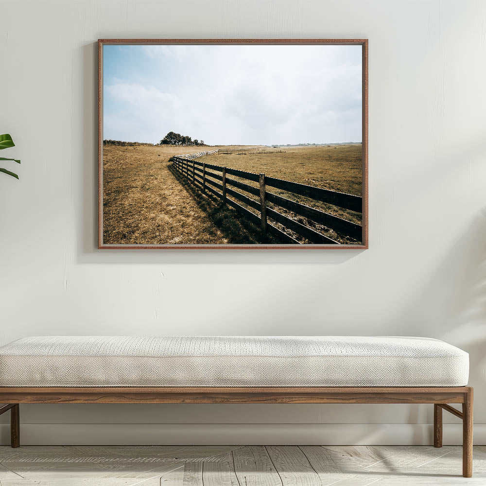 This artwork is perfect for those who appreciate the beauty of open landscapes and the simplicity of rural living. Whether displayed on its own or as part of a gallery wall, this open field and fence wall art will bring warmth and serenity to any room.