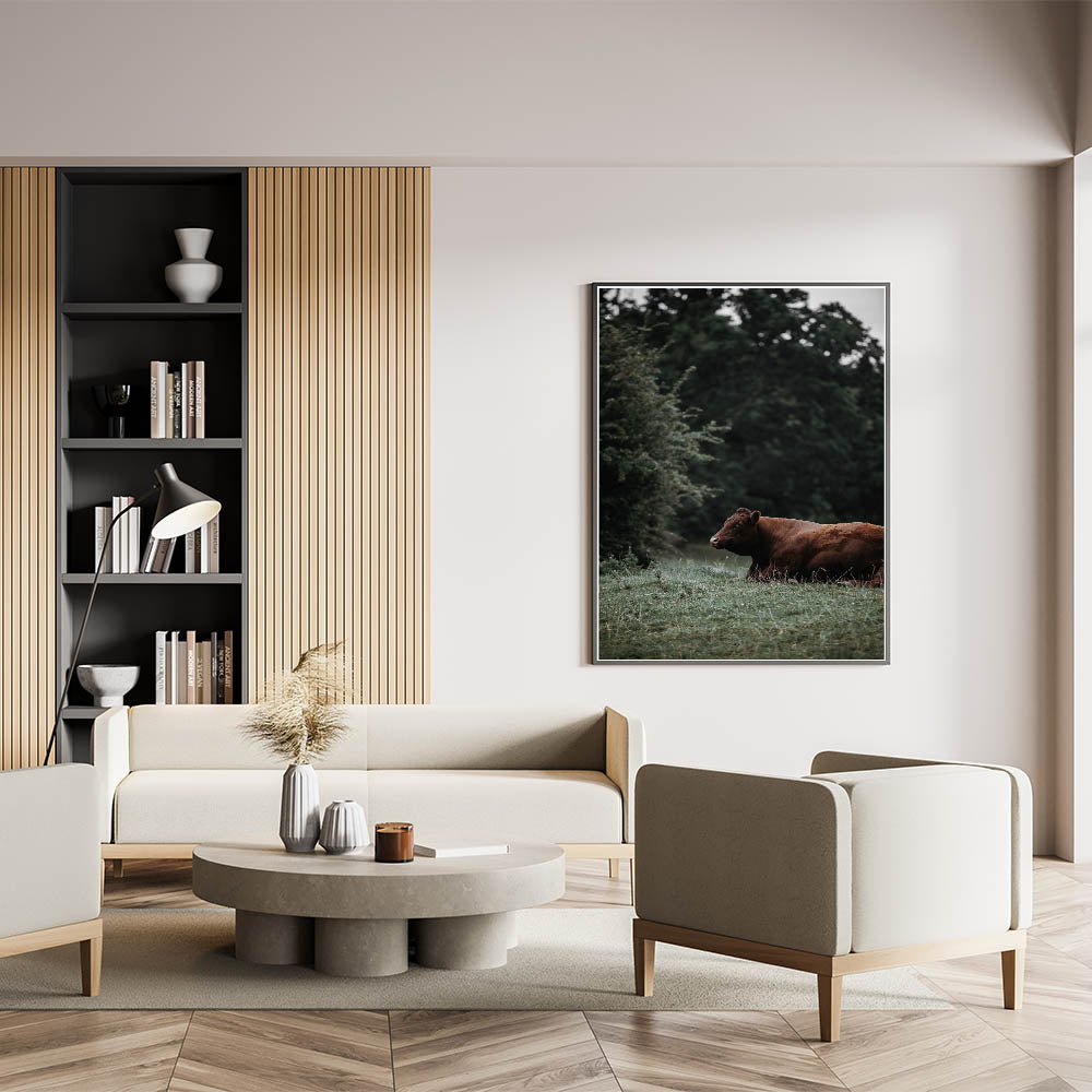 Add a touch of rustic charm to your home with this beautiful wall art featuring a cow resting in a tranquil meadow. The earthy tones and peaceful setting make this artwork an ideal addition to any farmhouse or rustic-style interior. Perfect for creating a serene, nature-inspired ambiance, this vintage-inspired piece brings warmth and character to any room.