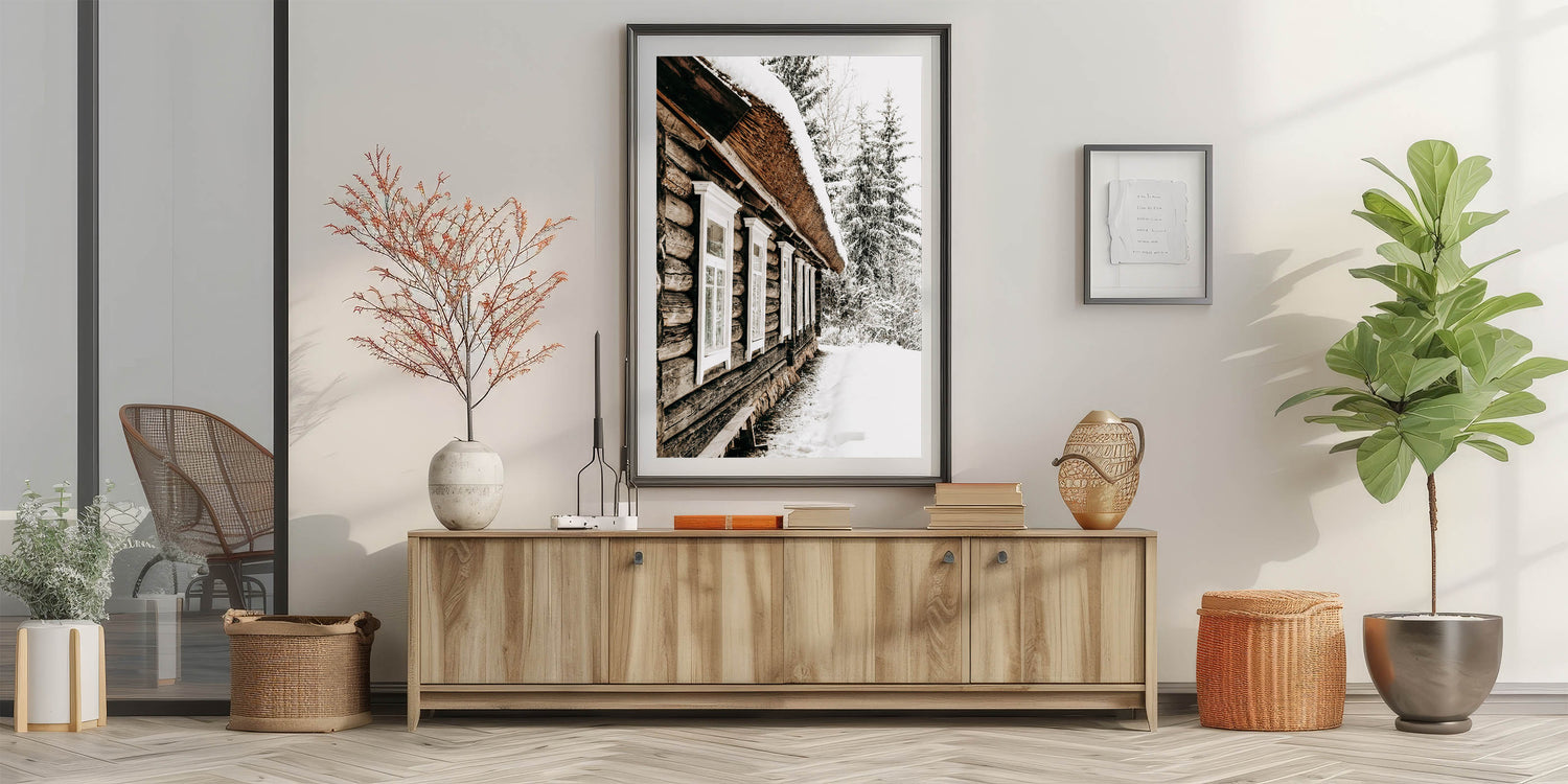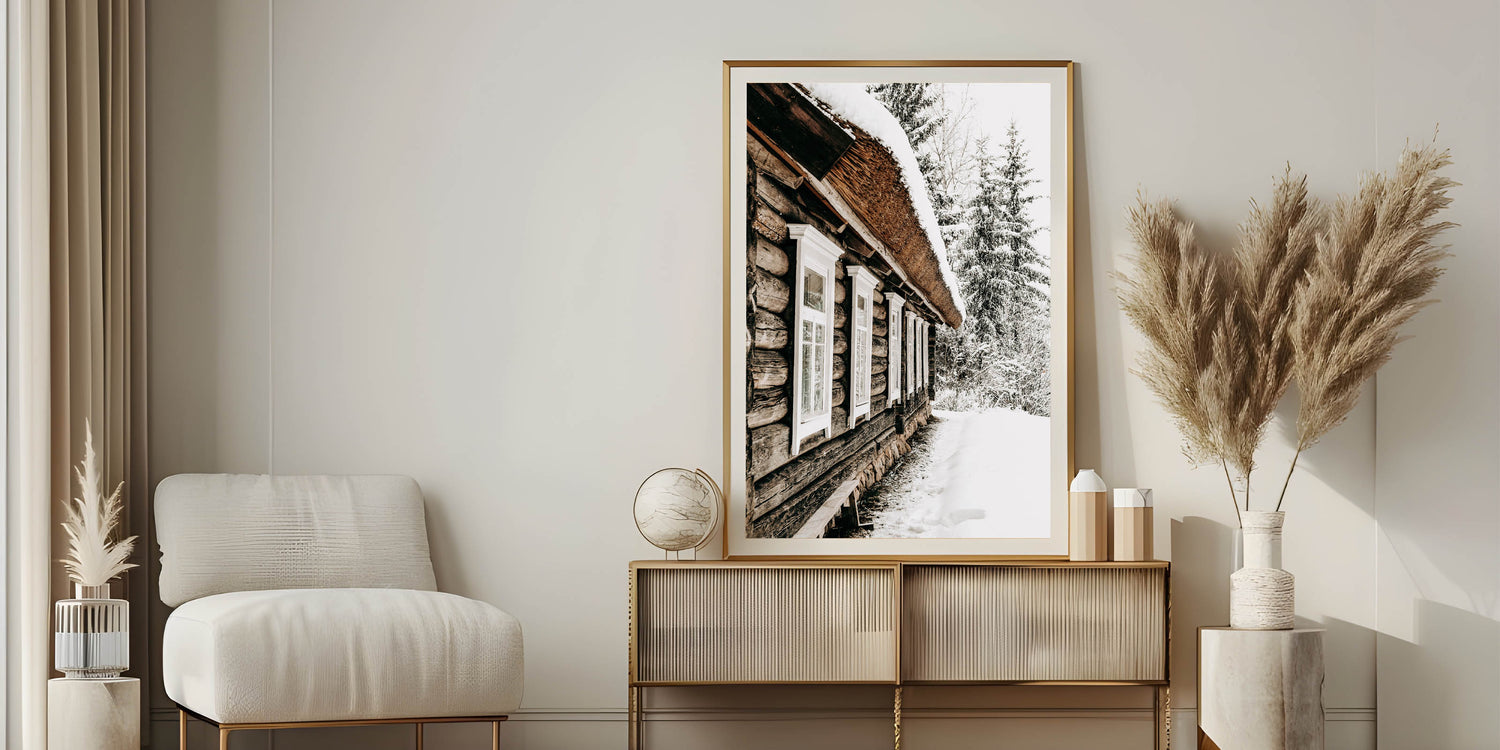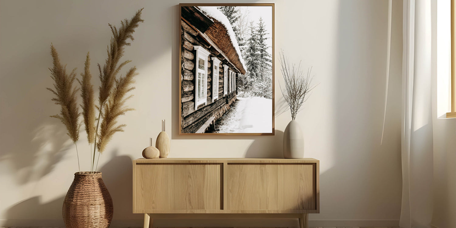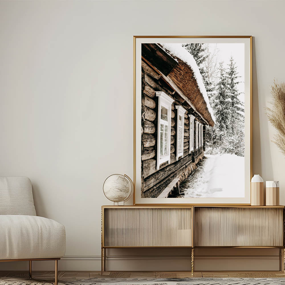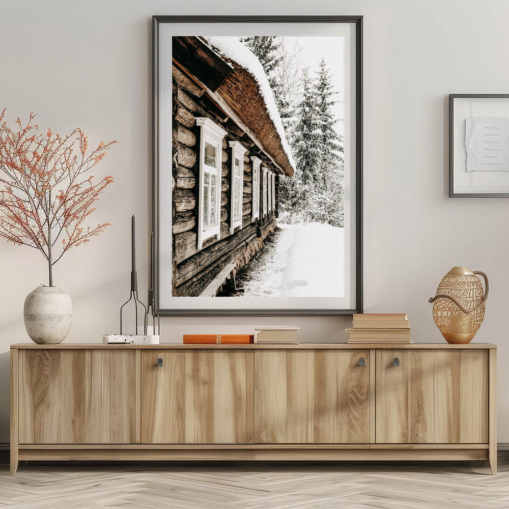 Rustic Farmhouse Decor – Snowy Cabin Wall Art for Country Style Homes
