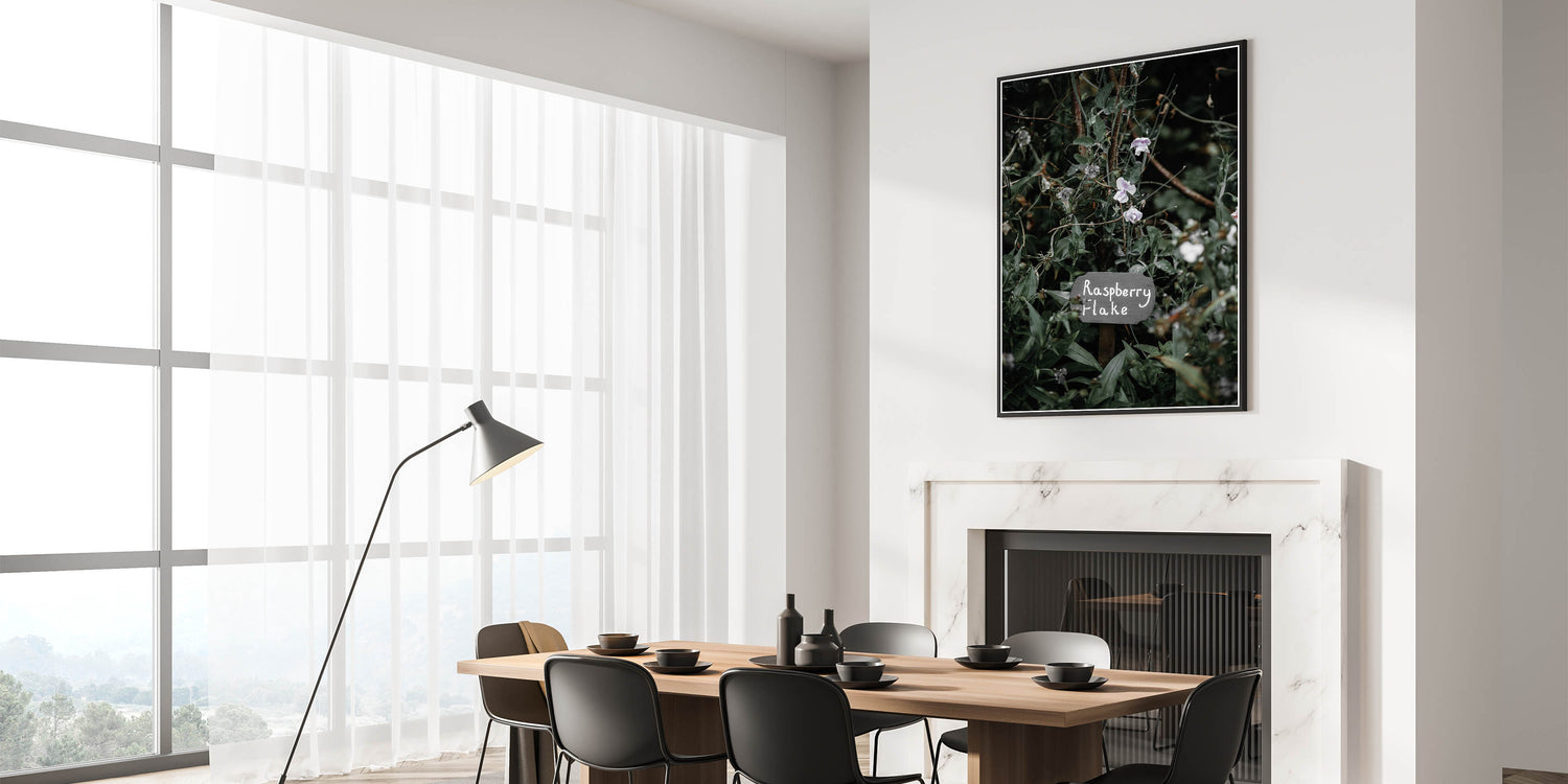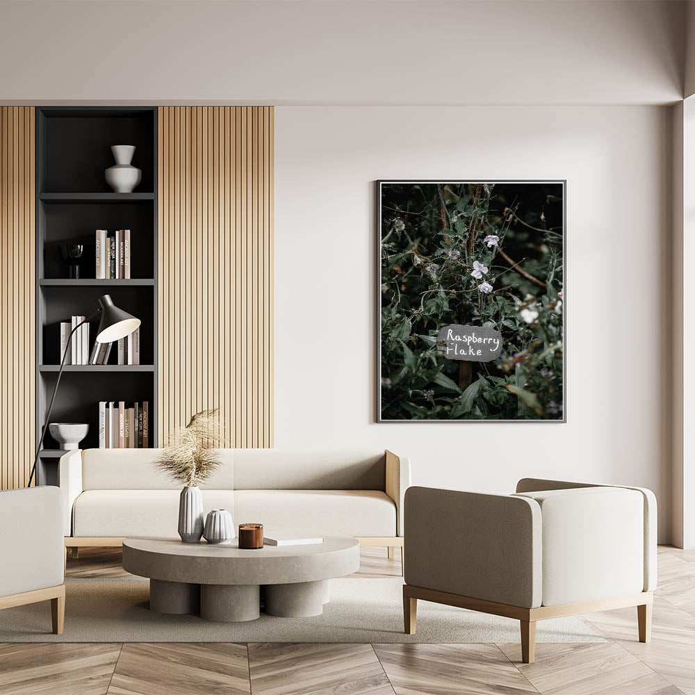 Bring a touch of nature’s beauty into your home with this delightful rustic wall art, featuring a quaint garden scene with a handmade "Raspberry Flake" sign. The natural greens of the foliage and the soft purple of the flowers create a calming and peaceful visual, making this art piece perfect for rustic home decor ideas. Ideal for kitchens, living rooms, or even outdoor patios, this vintage-inspired wall art captures the essence of a charming country garden. The detailed textures and soft hues bring a sense of serenity and warmth to any space.