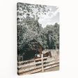 Embrace the tranquil charm of rural life with this rustic horse and barn wall art. Featuring a peaceful scene of a horse standing in front of a wooden barn surrounded by lush greenery, this piece captures the essence of country living. The natural tones and warm rustic vibes make it a perfect addition to any farmhouse-inspired space, adding warmth and serenity to your home decor.