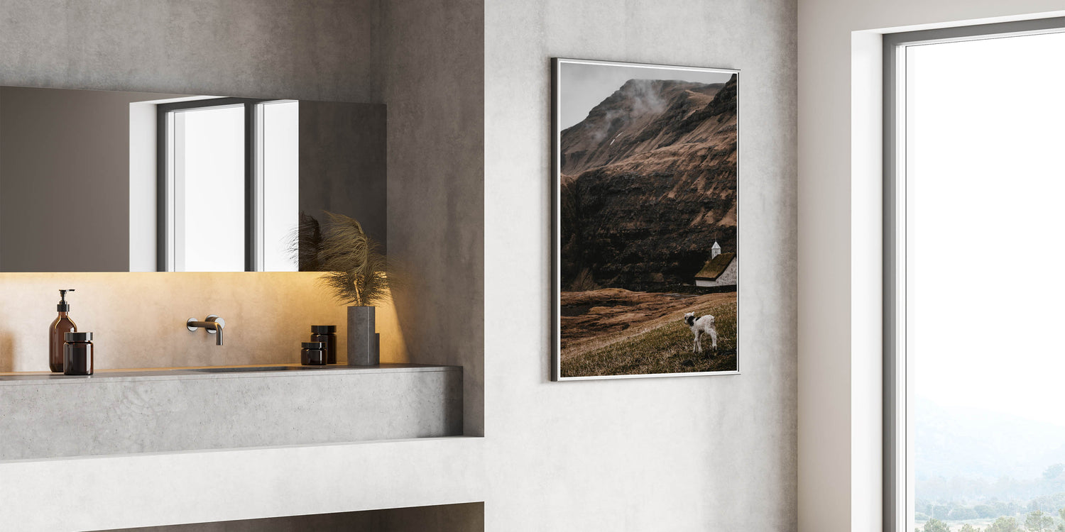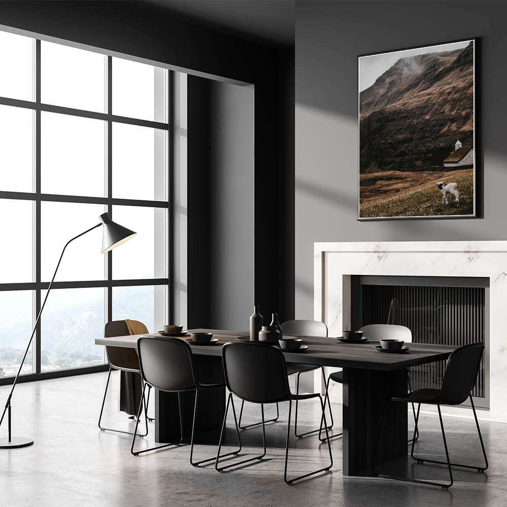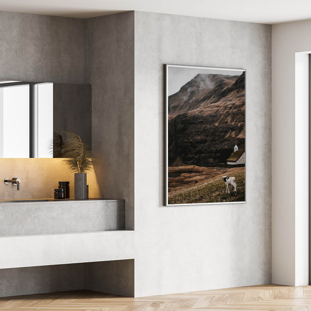 Capture the serene beauty of nature with this rustic wall art featuring a lamb standing in a peaceful, rugged landscape. The earthy tones, misty mountains, and a traditional farmhouse in the background create a perfect blend of rustic charm and vintage appeal. Whether you're looking for rustic home decor ideas or seeking a unique, vintage-inspired wall art piece, this artwork brings warmth and character to any space.