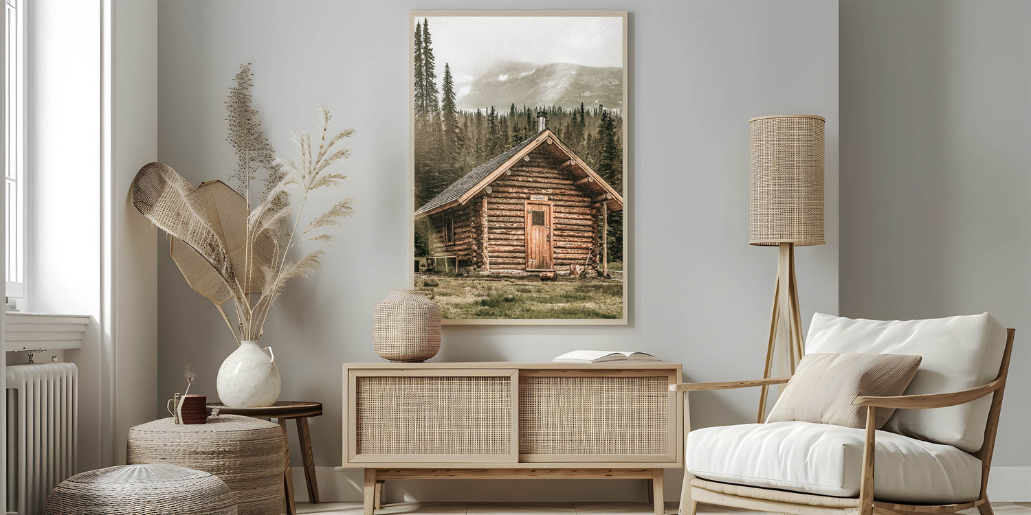 Rustic Mountain Cabin Wall Art | Farmhouse Decor with Scenic Wilderness