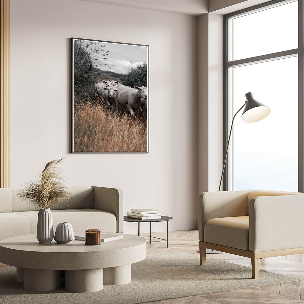 Capture the serenity of pastoral life with this stunning rustic wall art featuring a herd of sheep moving through tall grass. This design embodies the calm and peaceful essence of the countryside, making it perfect for anyone looking to incorporate rustic nature scenes into their home decor. The earthy tones and natural setting create a timeless piece that adds warmth and charm to any room. Whether you’re decorating a farmhouse or simply want to bring a bit of country life into your space, this artwork will evoke a sense of tranquility and simplicity.