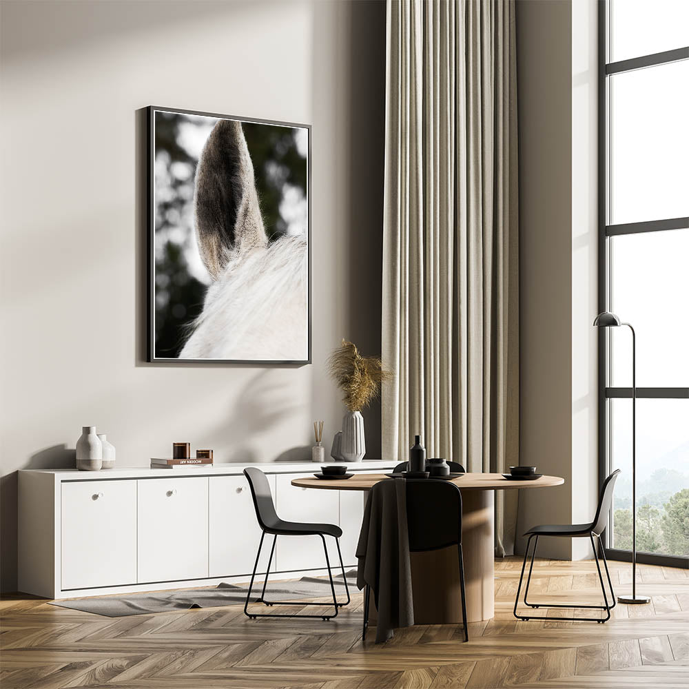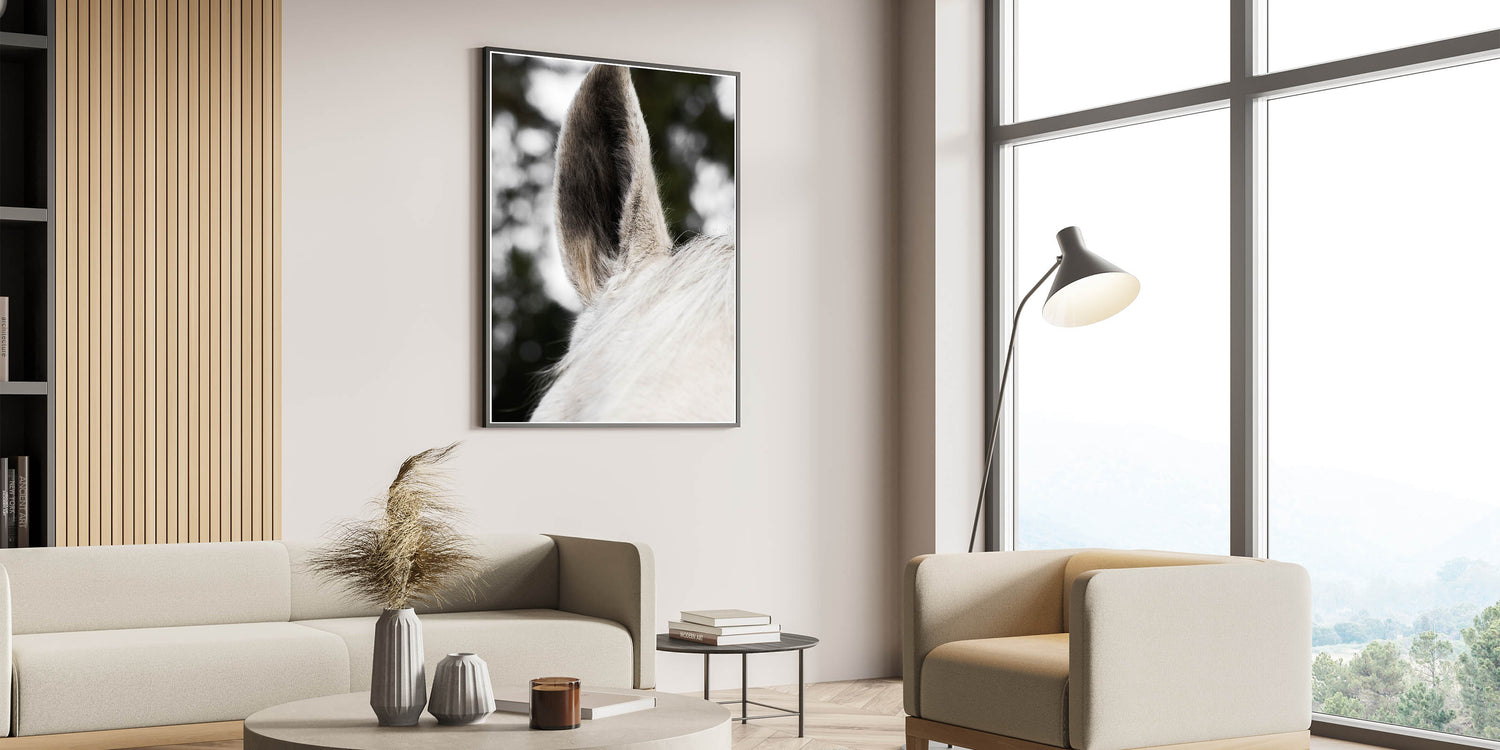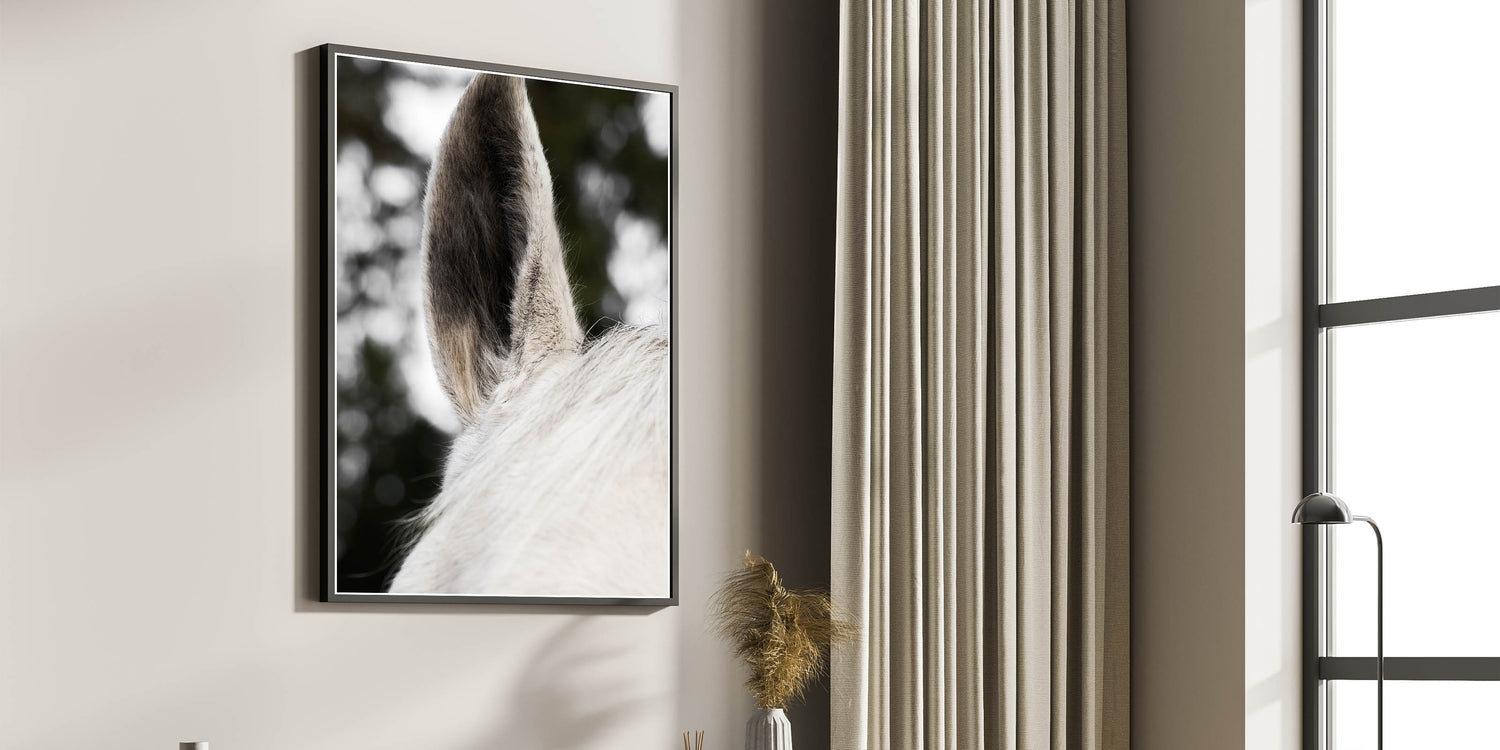 Add a striking yet subtle touch to your rustic or farmhouse decor with this Rustic Wall Art featuring a close-up of a horse's ear. The fine textures and soft hues of the horse’s fur provide a minimalist yet impactful image that brings a calming and natural feel to any space. This detailed close-up creates an intimate connection with nature, perfect for those looking to add a distinctive and refined element to their rustic home decor ideas.
