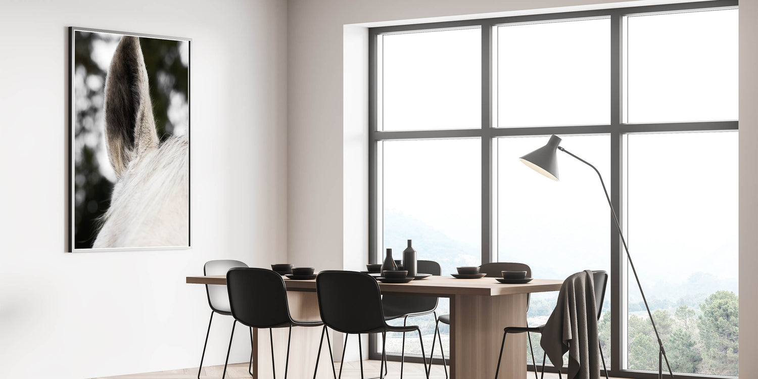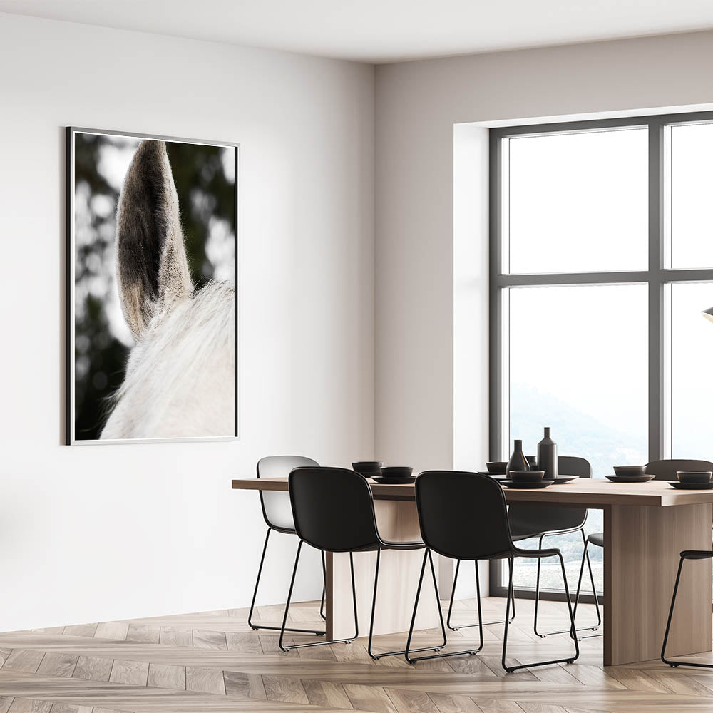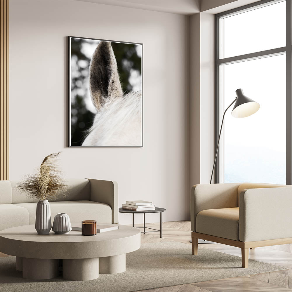 Add a striking yet subtle touch to your rustic or farmhouse decor with this Rustic Wall Art featuring a close-up of a horse's ear. The fine textures and soft hues of the horse’s fur provide a minimalist yet impactful image that brings a calming and natural feel to any space. This detailed close-up creates an intimate connection with nature, perfect for those looking to add a distinctive and refined element to their rustic home decor ideas.