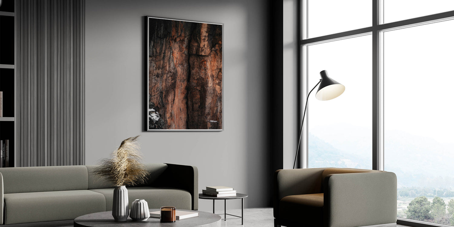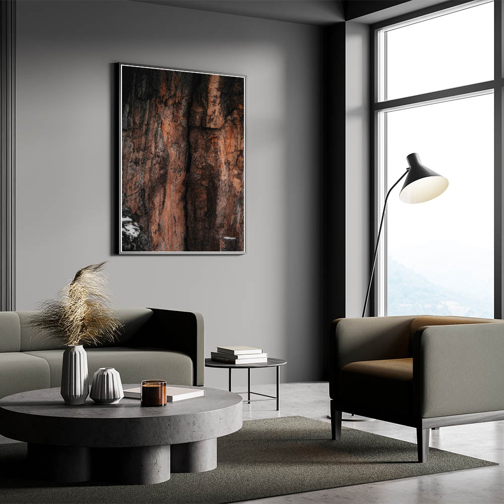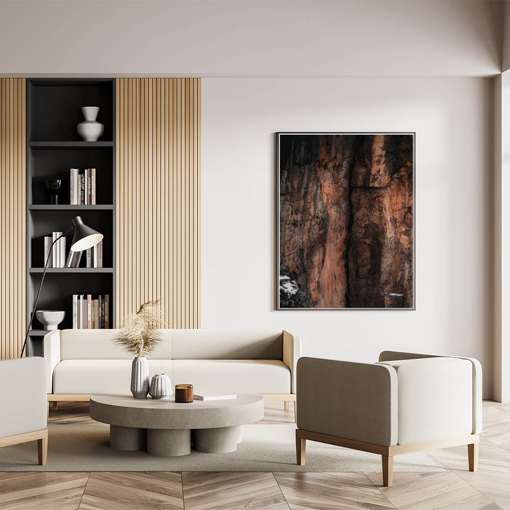 This rustic wall art is ideal for nature lovers and those looking to incorporate rugged, organic textures into their home decor. The deep, rich tones and striking rock formations bring an element of natural beauty to any room.