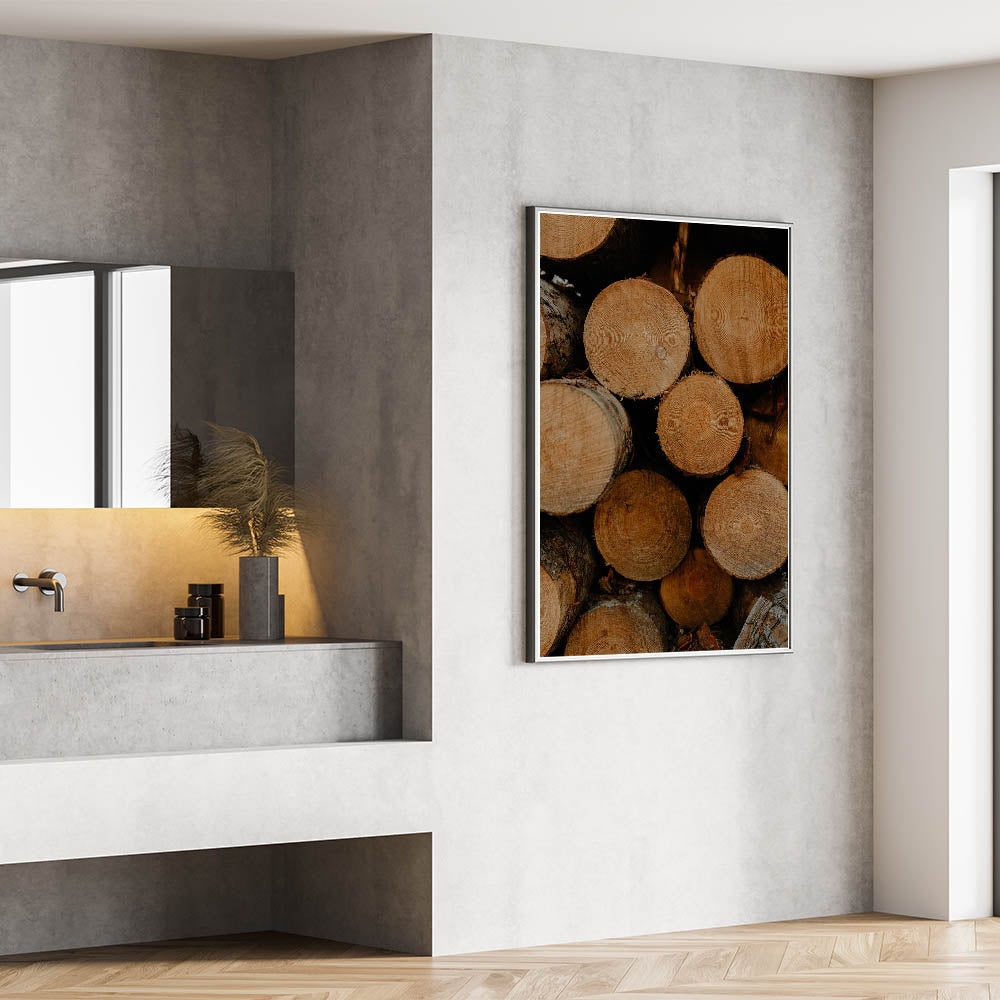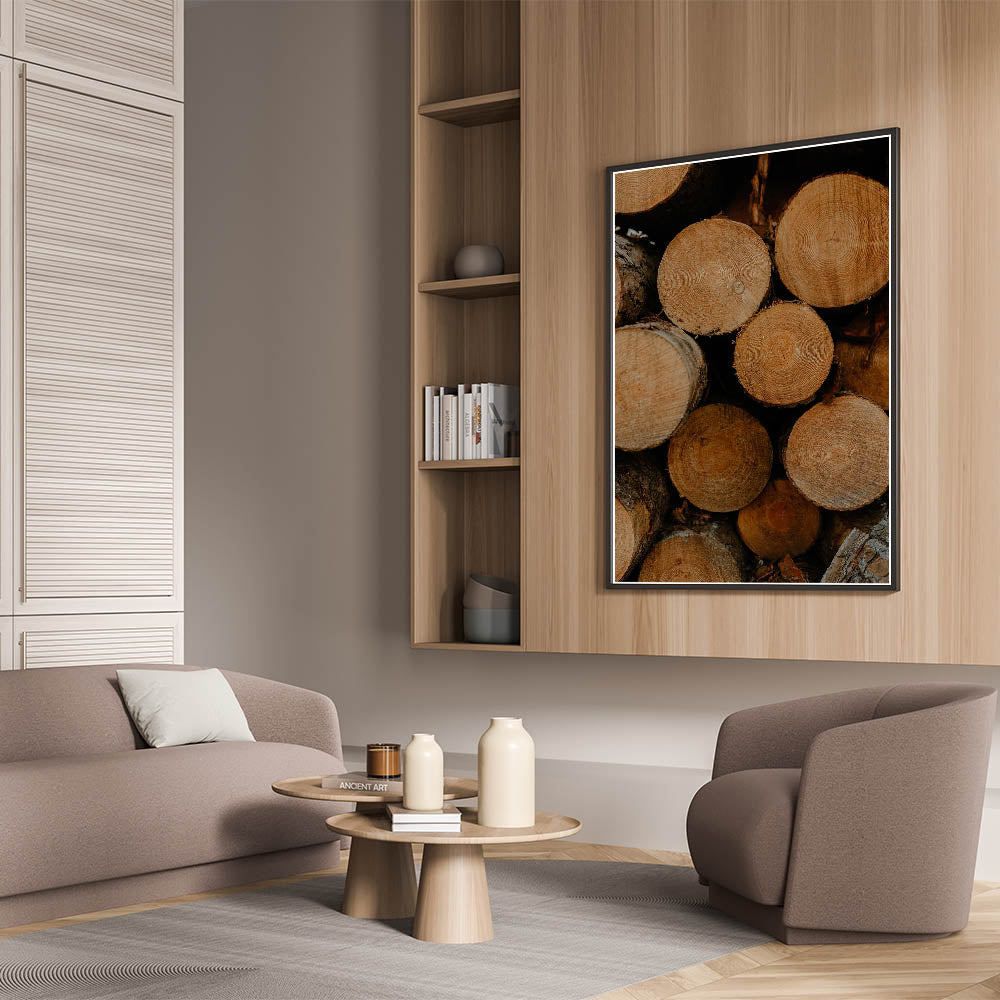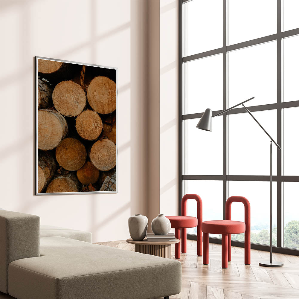Enhance your home’s rustic charm with this striking wall art featuring a close-up of stacked logs. The intricate details of the wood grain and natural rings evoke a sense of warmth and simplicity, making it the perfect addition to any farmhouse-style or rustic interior. Whether you're looking to add a natural element to your living room, dining area, or office space, this artwork beautifully captures the essence of nature-inspired decor.