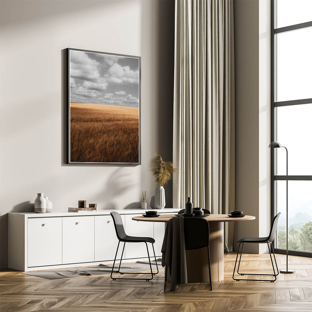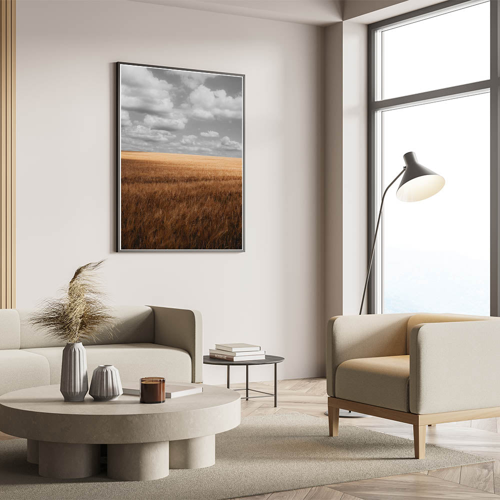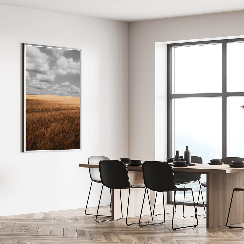 Bring the beauty of the countryside into your home with this stunning rustic wheat field wall art. Featuring golden wheat fields stretching into the horizon under a cloudy sky, this artwork captures the essence of serene, rural landscapes. The calming tones of the golden field and the soft, muted clouds create a peaceful and grounding atmosphere, perfect for any room that needs a touch of nature’s tranquility. This artwork is ideal for farmhouse, rustic, or country-style interiors, making it a timeless addition to your home decor.