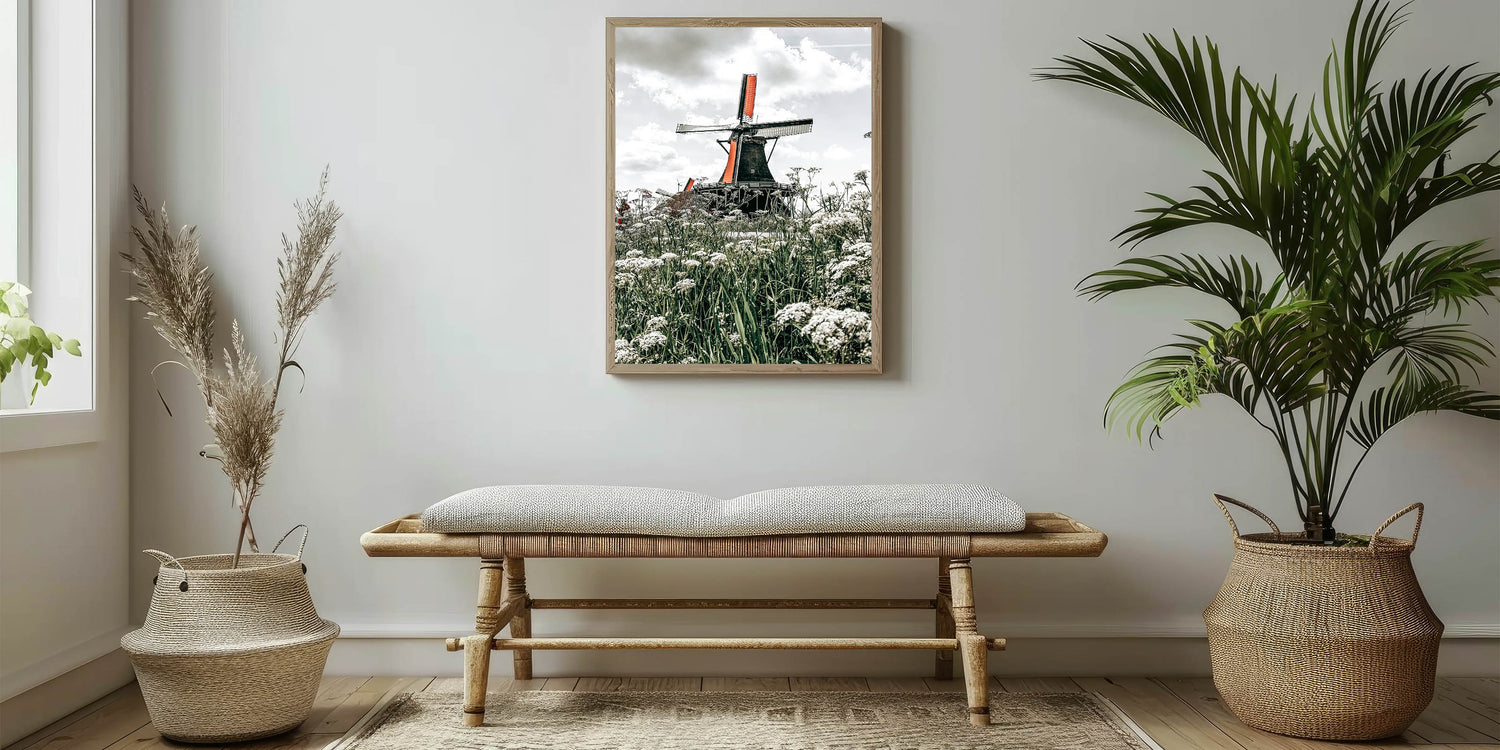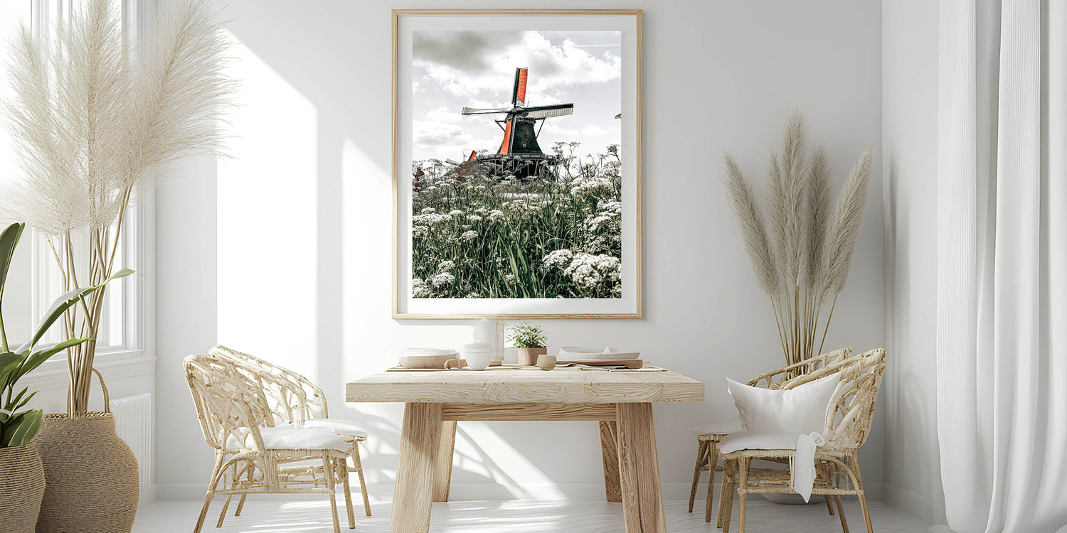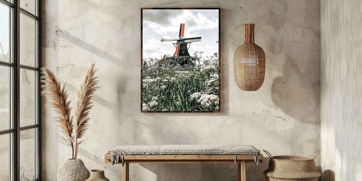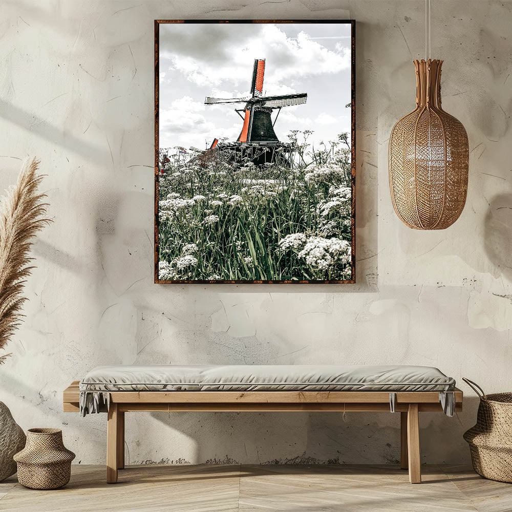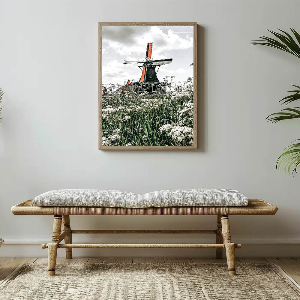 - Design: Traditional windmill with vibrant wildflowers, ideal for adding rustic charm to your walls