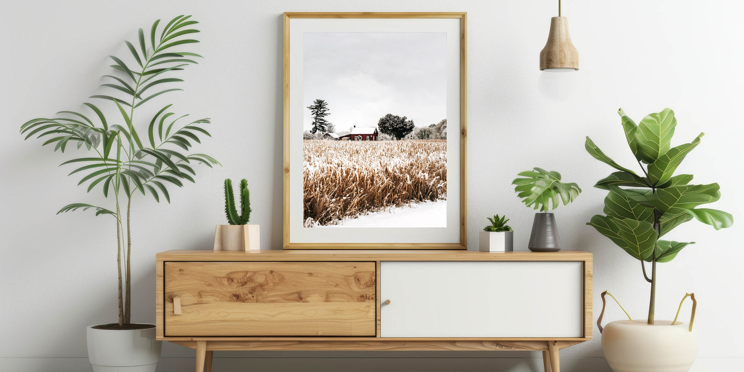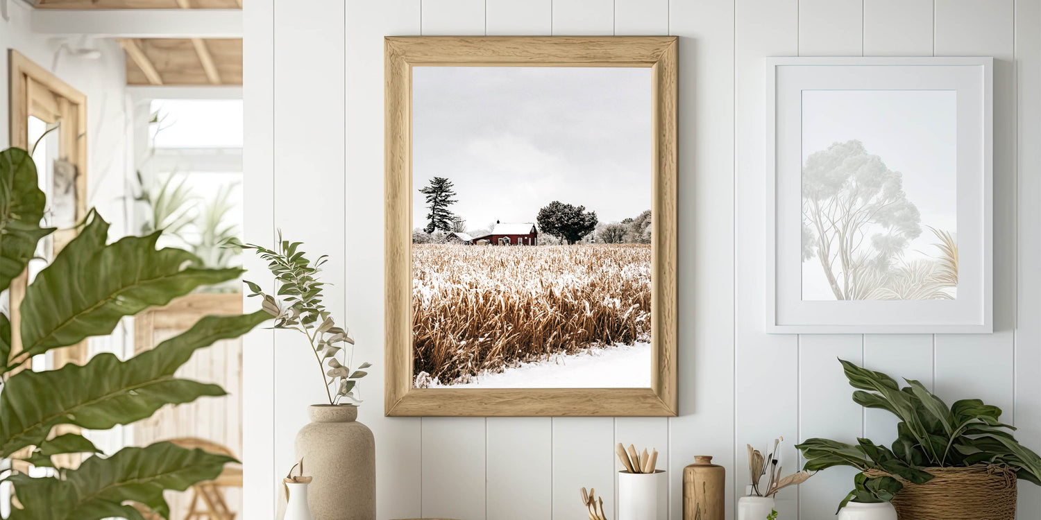 This stunning piece of art evokes the timeless beauty of winter on the farm, bringing both tranquility and warmth to any room. Whether you’re decorating for the season or adding a touch of rustic charm to your year-round decor, this wall art is a perfect fit.