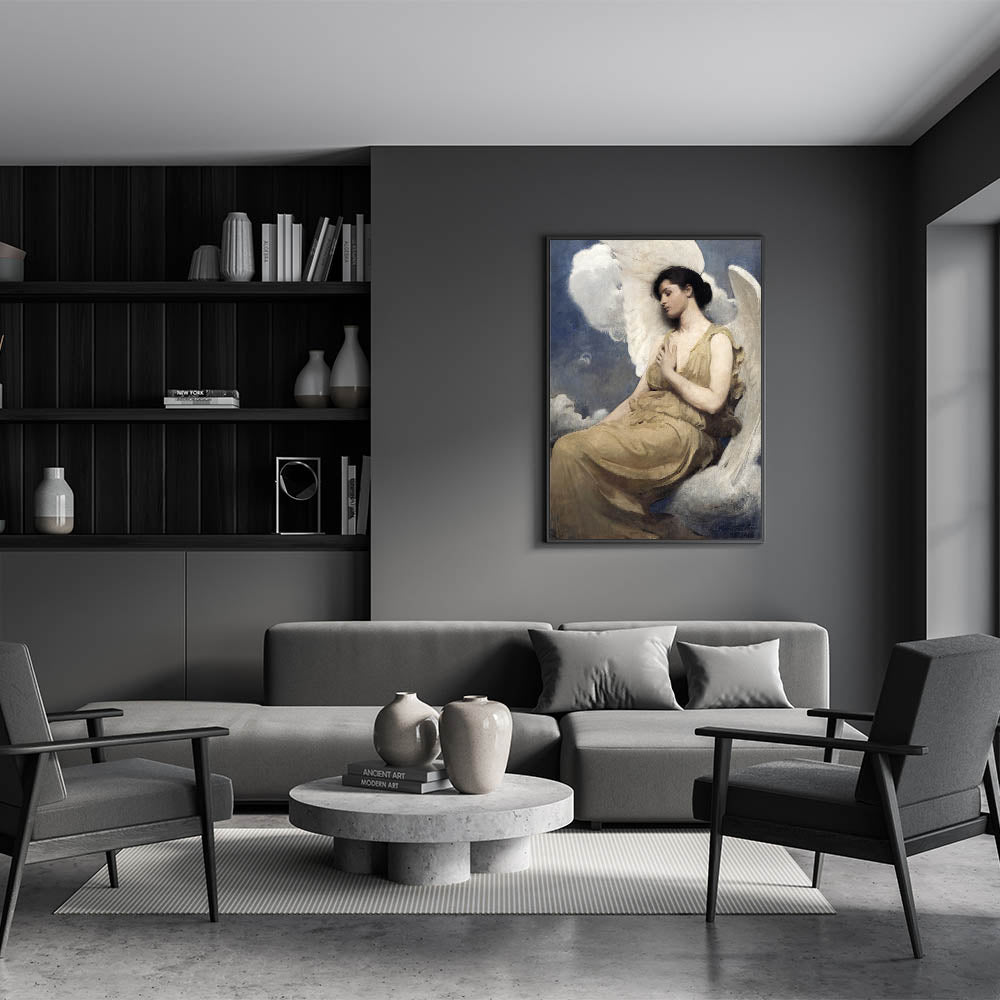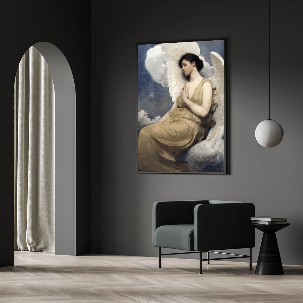 Enhance your space with this captivating Dark Moody Wall Art, featuring an ethereal angelic figure enveloped in soft, muted tones. The serene expression and gentle hues create a peaceful and atmospheric addition to any room, making it perfect for those looking to add a touch of timeless elegance to their decor. This piece is ideal for living rooms, bedrooms, or studies, blending beautifully with classic and contemporary interior styles.