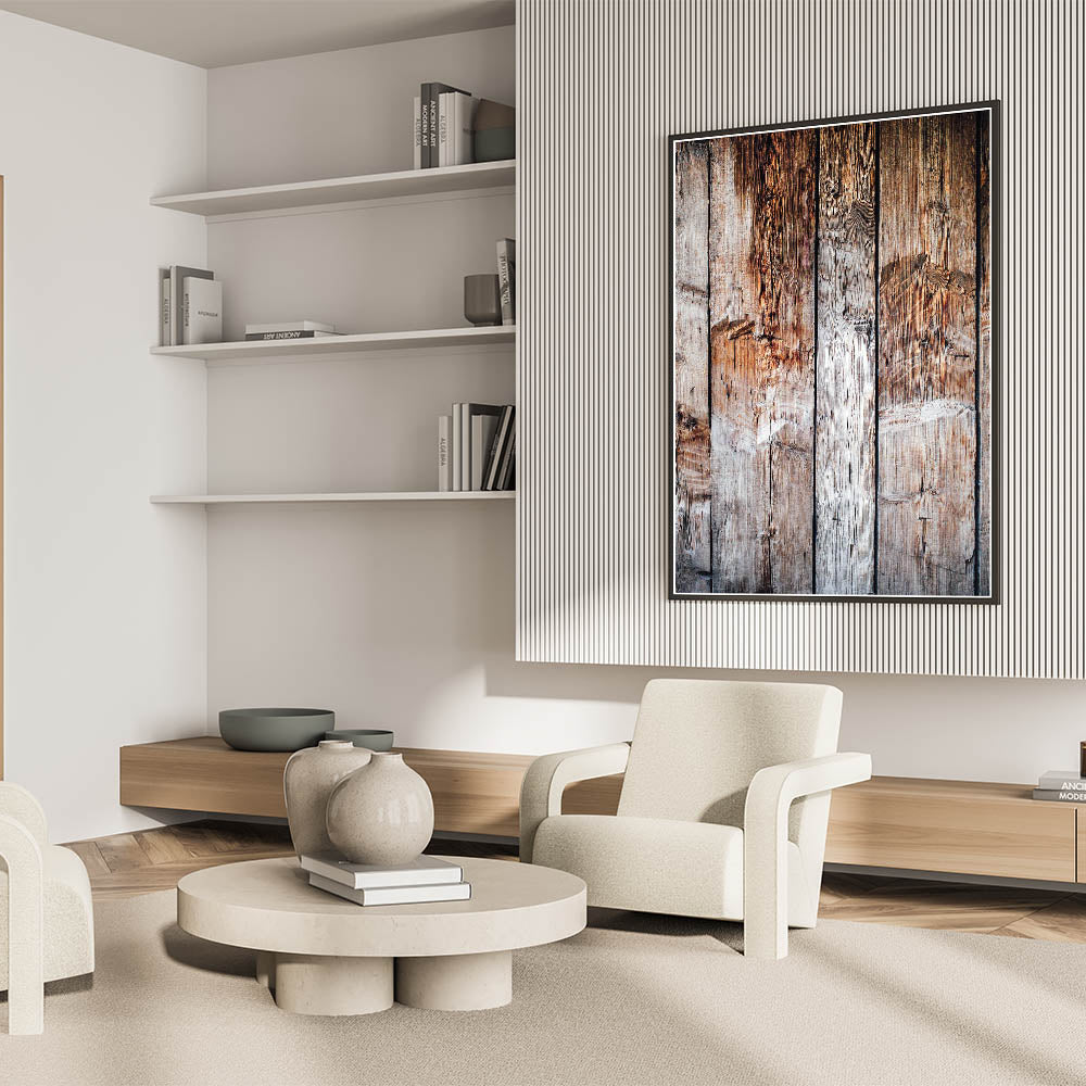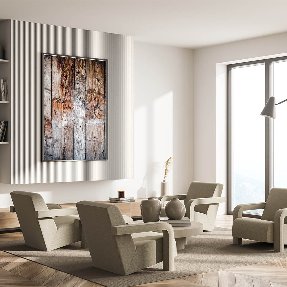 Ideal for those who appreciate craftsmanship and the organic simplicity of nature, "Timeworn Textures" adds a unique character and a strong visual statement to any room.