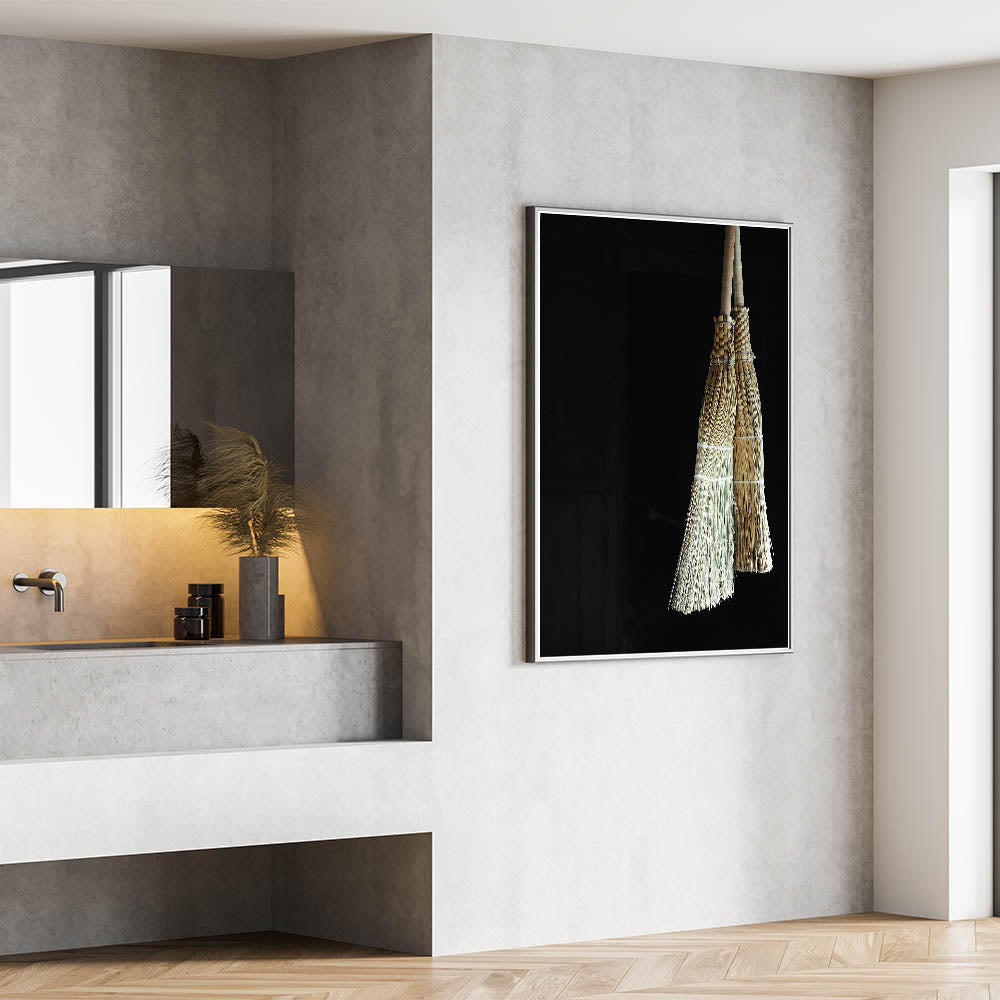 - Subtle and Elegant Detailing: The fine textures of the broom bristles and wooden handles are captured in this high-quality print, bringing a tactile sense to the artwork.