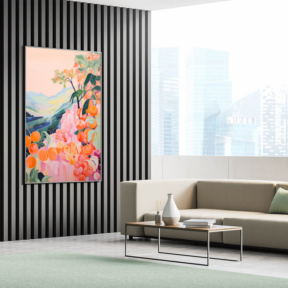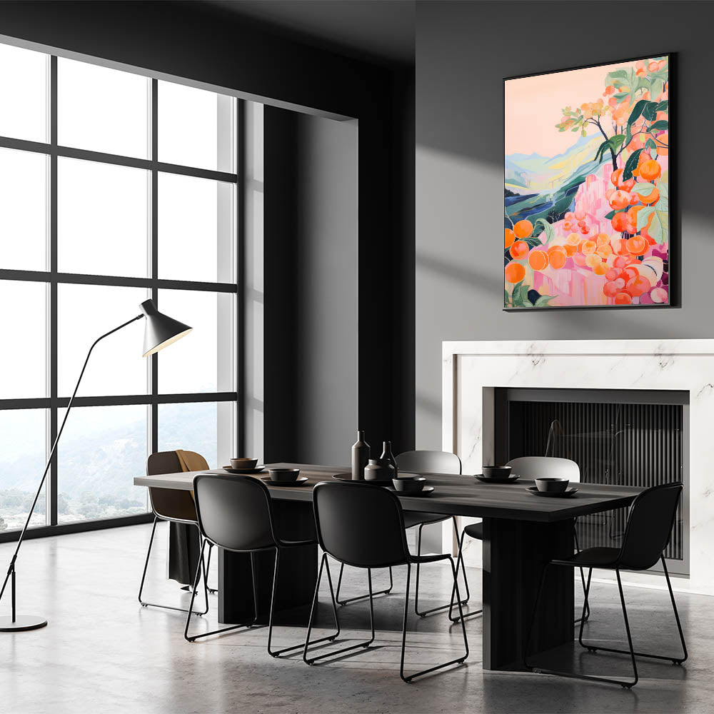 Bring an explosion of color and energy to your living space with this stunning electric-themed wall art. Featuring bright oranges set against a dynamic backdrop of lush greenery and pastel tones, this piece adds a fresh, modern touch to any room. Perfect for those who love bold and dynamic decor, this electric art canvas captures the vitality of nature with an artistic, abstract twist.