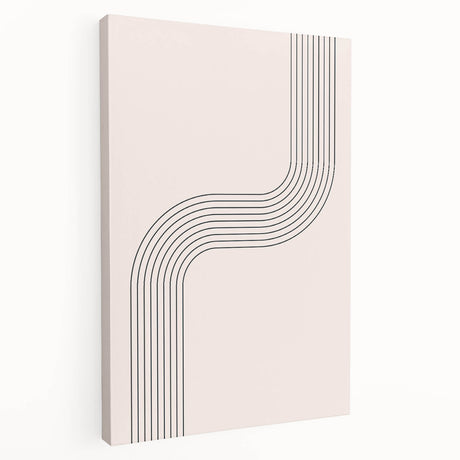 • Abstract minimalist wall art on stretched canvas showcasing soft neutral tones and geometric shapes, ideal for enhancing modern home decor aesthetics.