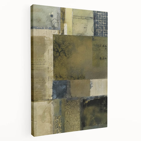 • Abstract minimalist wall art on stretched canvas showcasing soft pastel colors and geometric shapes, ideal for modern home decor, displayed in a side view.