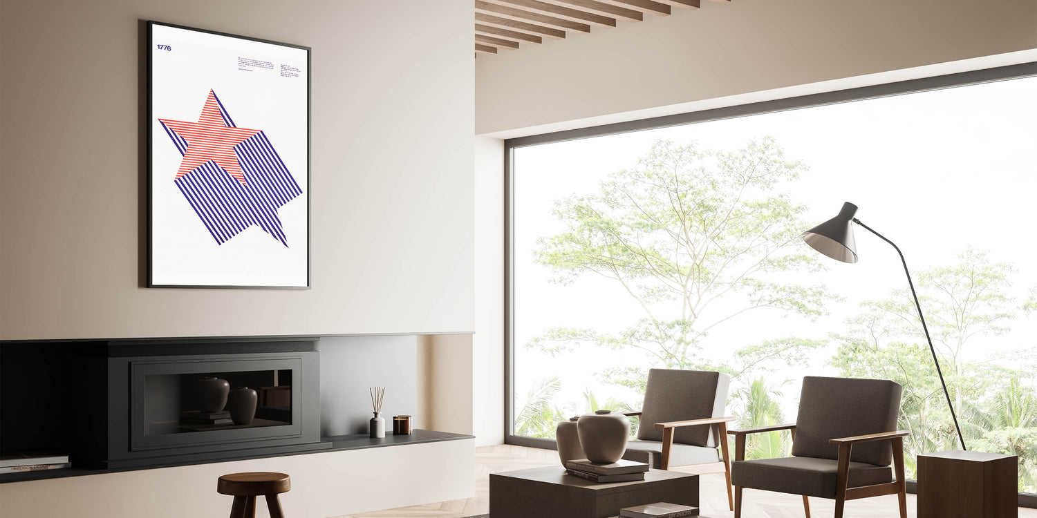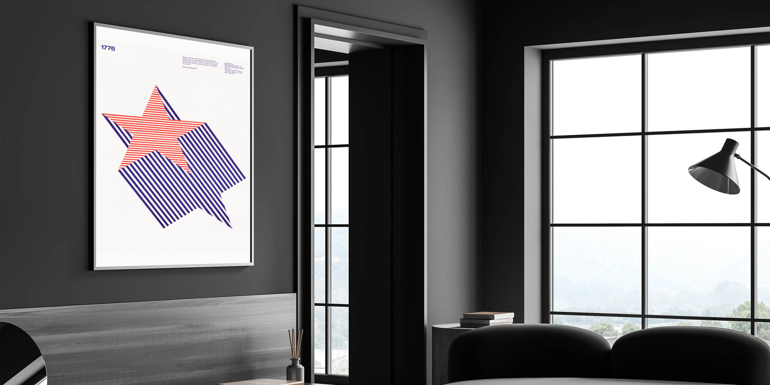 Bold Art Deco Wall Art - 1776 American Star Design in Red and Blue Stripes