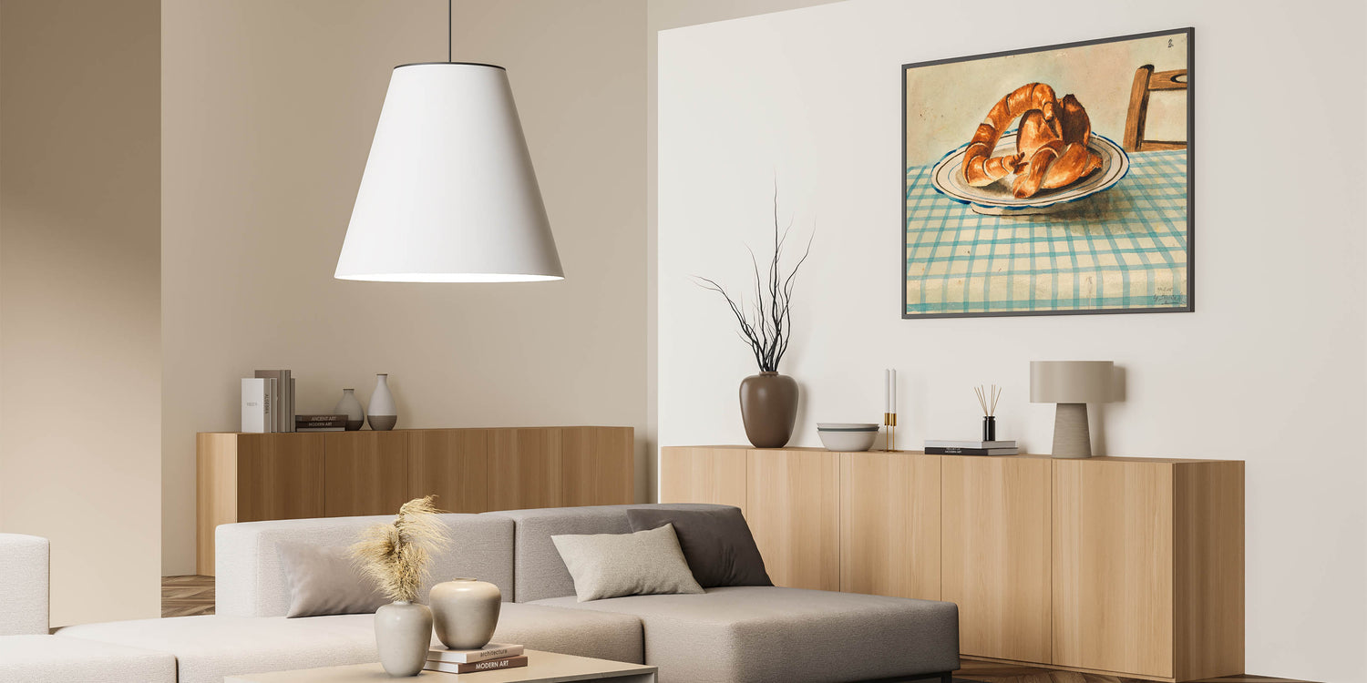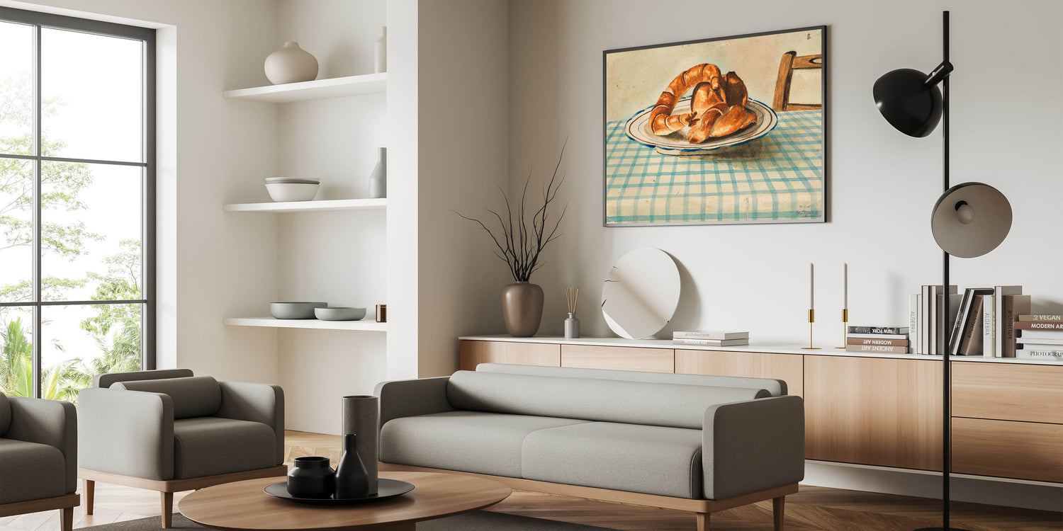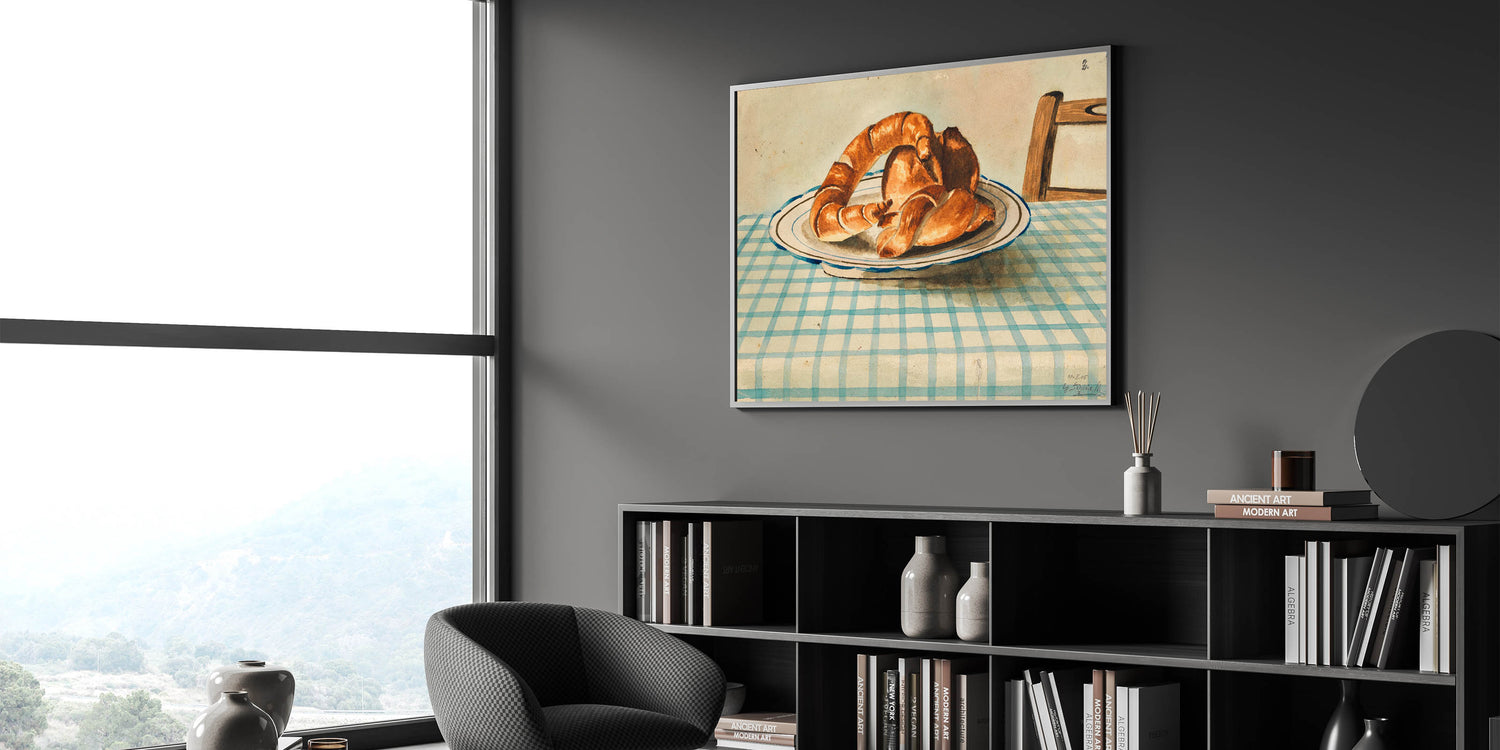 Bring a touch of vintage charm to your kitchen or dining area with this delightful Art Deco wall art featuring a still life of croissants on a checkered table. This artwork captures the simplicity and elegance of everyday life, showcasing warm tones and intricate details that add a cozy, nostalgic feel to any space. Perfect for lovers of classic still-life art and 1920s style, this piece complements both traditional and modern décor.