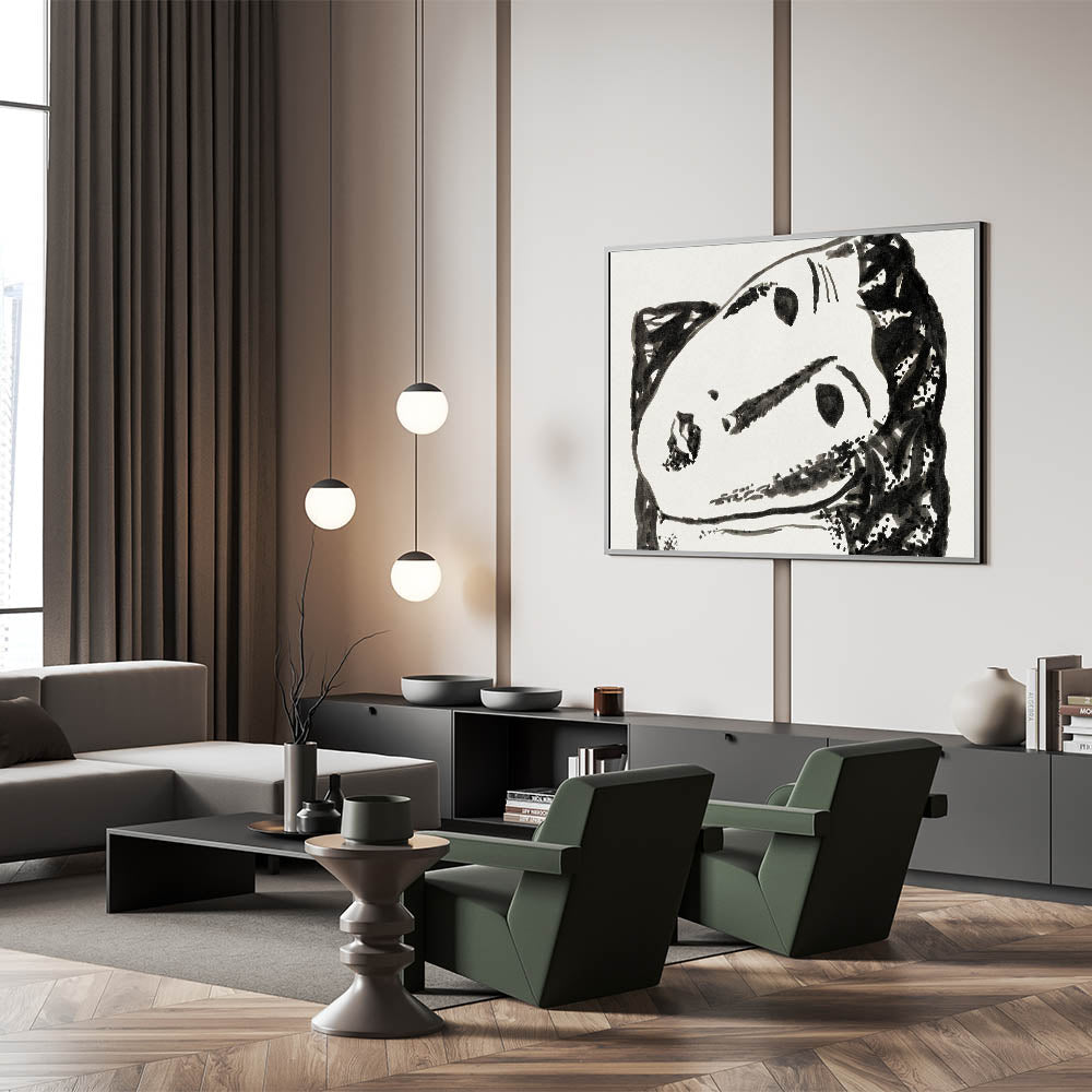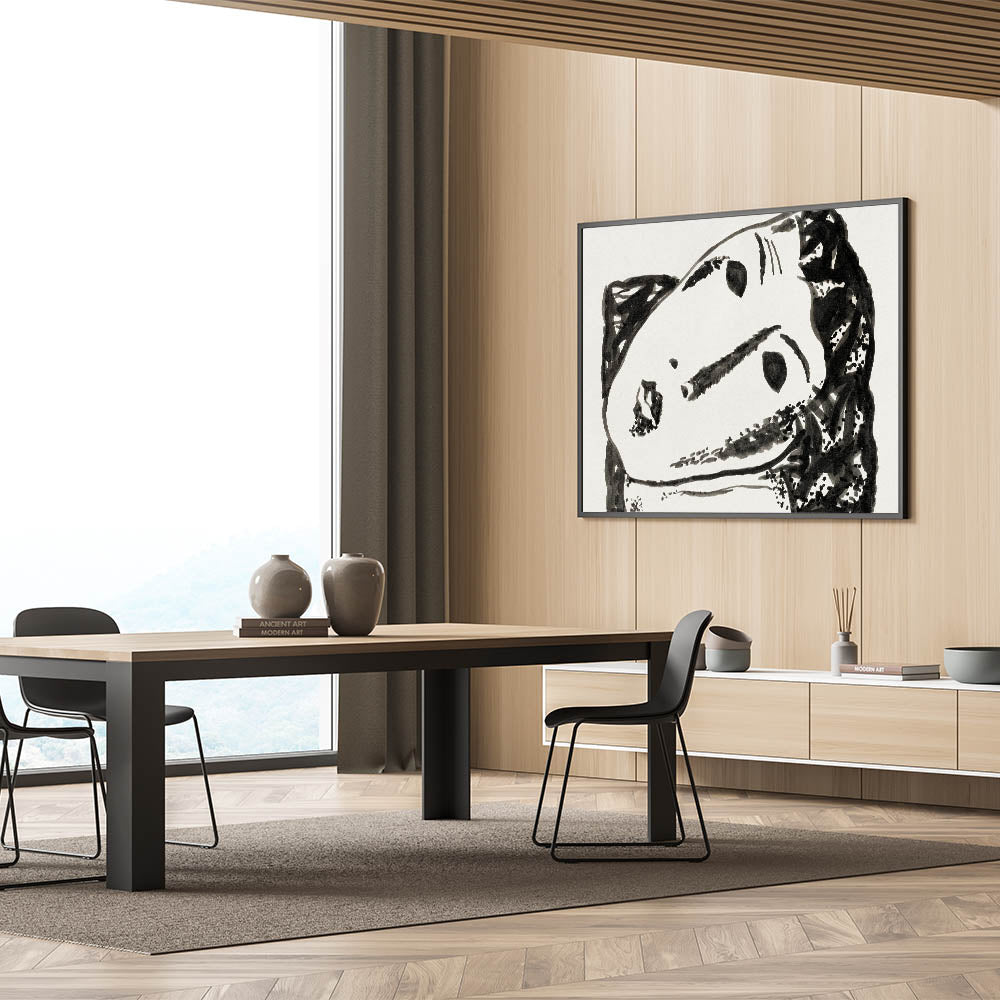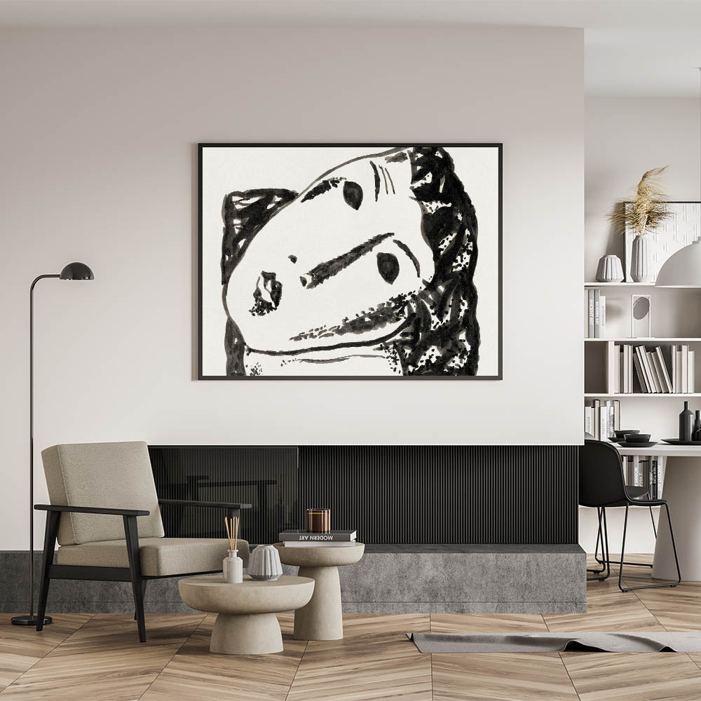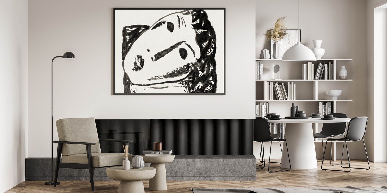 Abstract Expressionist Face Illustration – Monochrome Wall Art